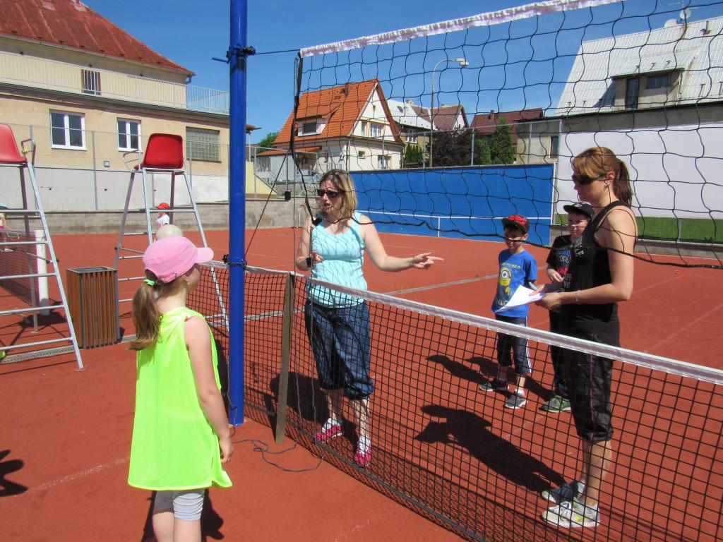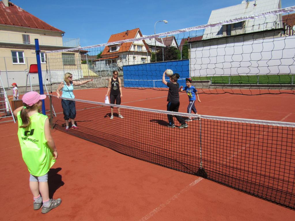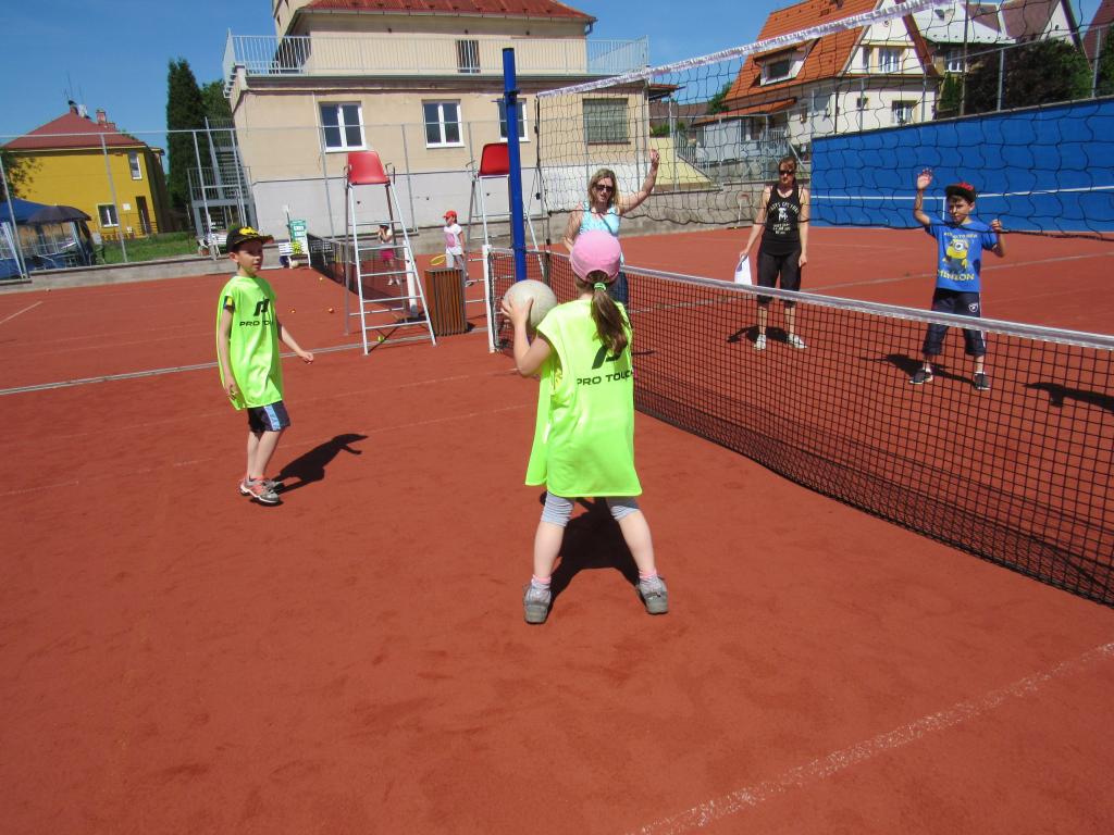 Na jednom z připravených kurtů probíhal turnaj v přehazované mezi žáky III. A. Ostatní kurty využili žáci k různým sportovním aktivitám a soutěžím zorganizovaným panem Jordou.