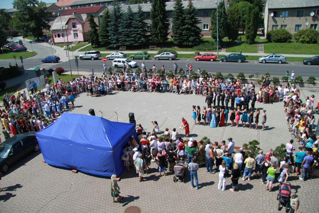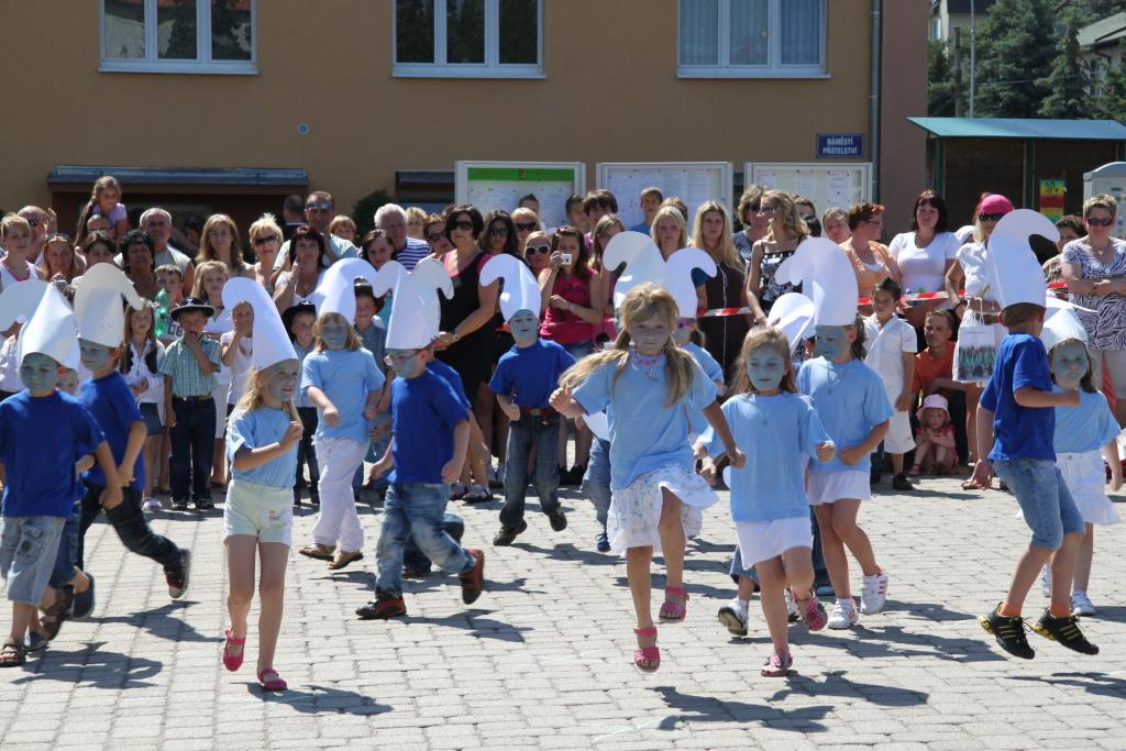 Následovalo krátké kulturní vystoupení. Zástupci z MŠ Duhová předvedli, jak ovládají hru na flétnu a posléze zatancovali v rytmu country. Školáci z MŠ Okružní pak ovládli náměstí v podobě tance a party modrých Šmoulů. Človíček z přípravné třídy odrecitoval pohádku o řepě. Deváťáci zvolili konvenční zpěv dvou písní.