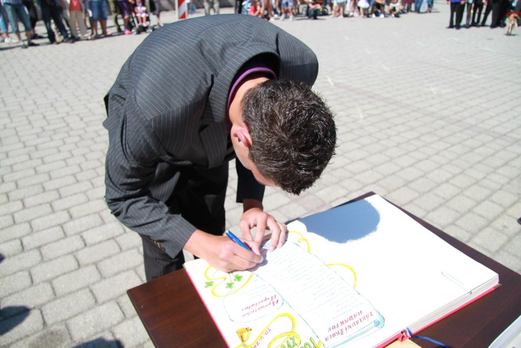 Deváťáky ještě však čekal podpis do pamětní knihy a převzetí malého dárku z rukou starosty a ředitelů. Celé setkání uzavíral krátký proslov, který děkoval a zároveň vzpomínal na uplynulých devět let.