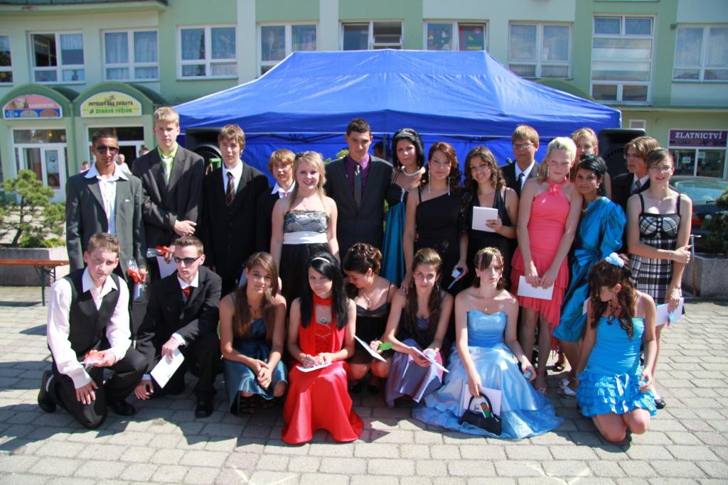 Nemilosrdné slunce pražilo jako o závod, a tak dívky v nastrojených róbách a chlapci v oblecích jistotně prožívali pravé peklo již při krátkém průvodu, který se vydal od MKS do centra. Naštěstí je proletošek vycházejících méně, a tak se podařilo celou akci zvládnout asi za šedesát minut.
