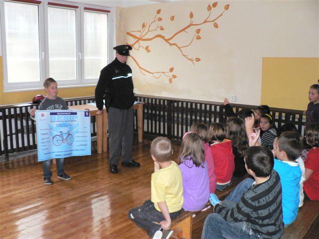 Většina z nás žáků jezdí na kole, a tak je dobré si čas od času zopakovat správná pravidla silničního provozu. K tomu nám pomáhají různé dopravní akce. Jednou z nich byla i v pondělí 10.10.2011 akce „Přilba.“ Tu pro žáky čtvrtých tříd každoročně připravuje Komise prevence kriminality v Habartově ve spolupráci s DDM a Policií Habartov. Pan pprp. Jiří Převrátil nám připomněl důležité části vybavení kola, správné chování cyklistů v dopravě a bezpečnost dětí na silnici. Na závěr jsme psali malý dopravní test. Po vyhodnocení nejlepší žáci dostanou odměnu. Líbí se nám, že celá akce bude pokračovat i na jaře, kdy si budeme moci naše teoretické znalosti z dopravní výchovy ověřit v praktické části při jízdě na kolech. Už teď se na ni těšíme.