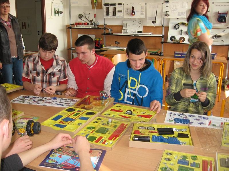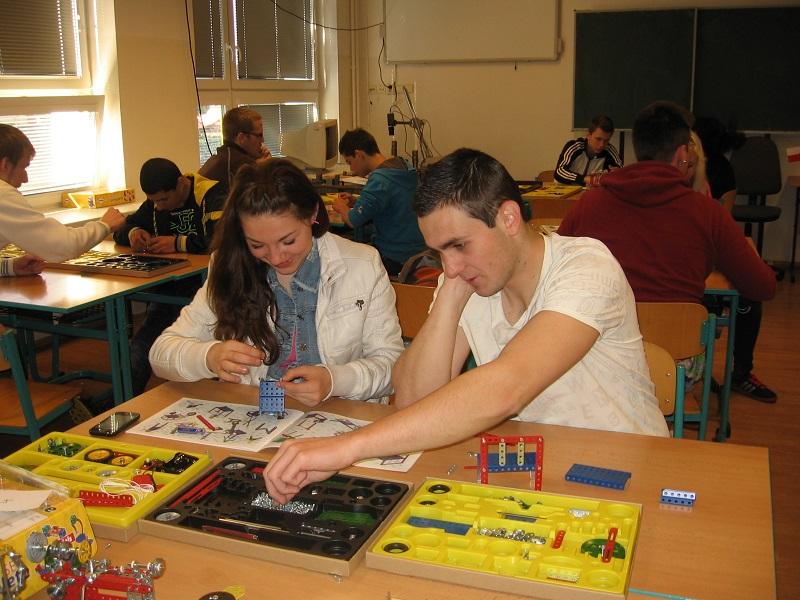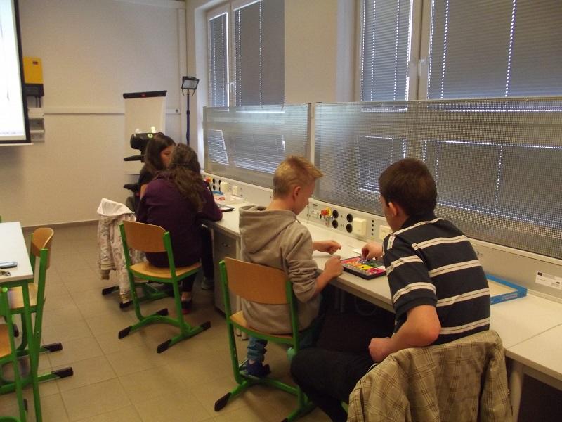V učebnách fyziky, elektrotechniky a strojní výuky si nejdříve pod vedením studentů a profesorů ISŠTE a pak v páru se studenty vyzkoušeli kouzlo elektrolýzy, sestavili grafy teploty, pohráli s se stavebnicí MERKUR a pronikli do tajů využívání počítačové techniky v praxi.