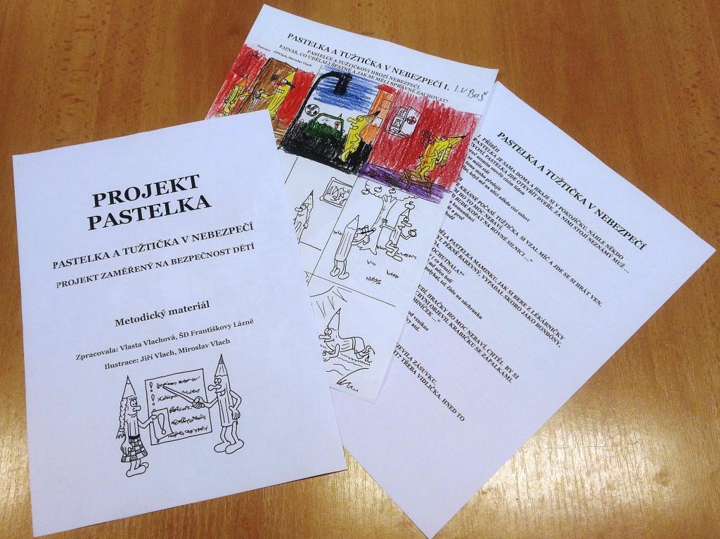 Bezpečí našich dětí nám není lhostejné a tak, vedle každodenního upozorňování na vhodné chování, se věnujeme projektu, který se jmenuje „Pastelka“ , s podtitulem „Pastelka a Tužtička v nebezpečí“. Nenásilnou formou si povídáme o nebezpečí, které na děti číhá na každém kroku, diskutujeme, vyprávíme vlastní zážitky a také příběhy, které se staly v našem nejbližším okolí. Děti k různým tématům přistupují vážně, naslouchají a berou si ponaučení… Projekt má devět hlavních témat, která najdou nakreslená i na velké omalovánce. Hlavními hrdiny jsou Tužtička a Pastelka, kamarádi, kteří ne vždy vědí, co je správné a co ne. Děti každý příběh hodnotí, radí a na konci toho všeho dané téma vybarvují pastelkami. Projekt „Pastelka“, který zpracovala Vlasta Vlachová, probíhá v naší školní družině celý rok.