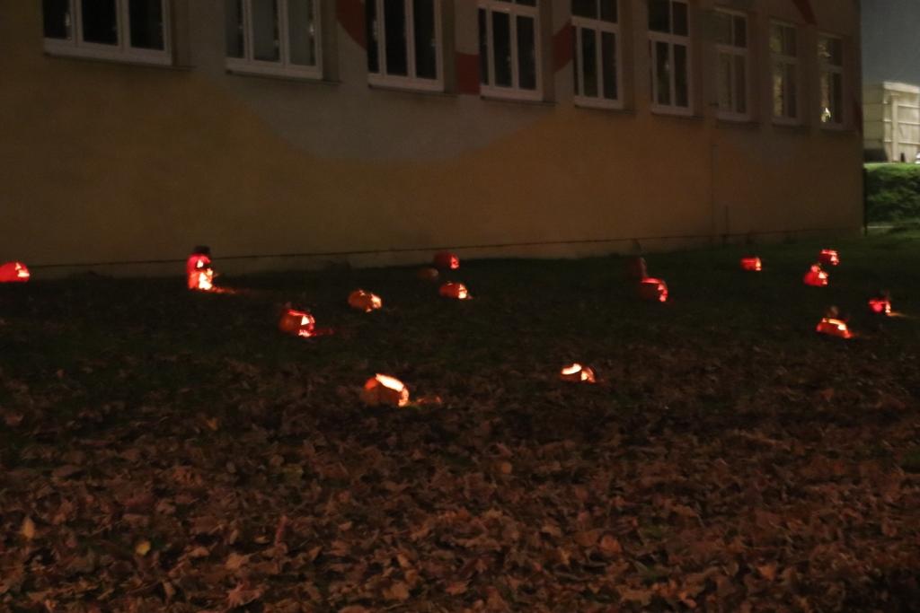 Poslední den v říjnu patří už tradičně v naší školní družině „Dýňování“. Ten den všichni přikládáme ruku k dílu a „dlabeme“ dýně. Ano – je sice Halloween, ale my si naše dýně připravujeme pro světýlko, které ukazuje všem broučkům, kam jít spát…zima se blíží. Letos jsme vyzvali všechny třídy na nižším stupni naší školy. Byli jsme rádi, že výzva byla přijata a všechny třídy se zapojily. Ve 18 hodin jsme se sešli nejdřív u školní družiny, kde jsme zapálili naše „dýničky“ a pak už jsme všichni – v dosti hojném počtu jak dětí, tak i dospělých, přešli k pavilonu B – budově dětí nižších ročníků. Byl to opravdu krásný pohled, když bylo všechno rozsvíceno….dětem se rozzářily oči a i nám dospělým se ta krásně osvětlená zahrada moc líbila.Budeme moc rádi, pokud se nám tahle akce povede zorganizovat i za rok…