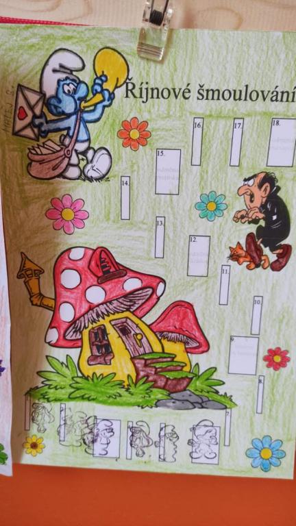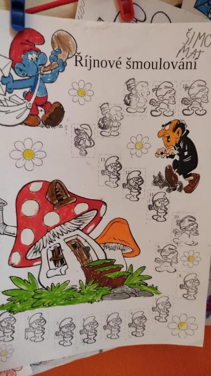 Hned od začátku měsíce jsme spustili celoměsíční hru „Říjnové Šmoulování“. V rámci této hry se celou dobu plnilo plno úkolů a jejich splnění se do téhle karty značilo šmoulím razítkem. A jaké to byly úkoly?