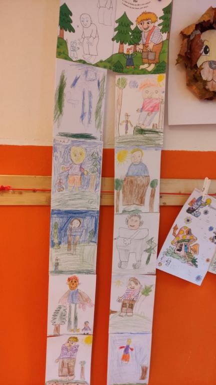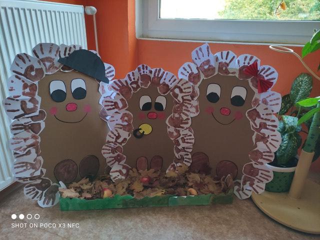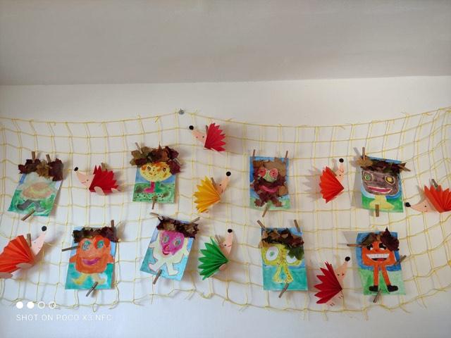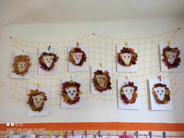 Začátkem října jsme byli sbírat listy a plody lesa na výrobu různých podzimních prací. Vyrobili jsme si Podzimníčka a lvíčka z barevných listů.