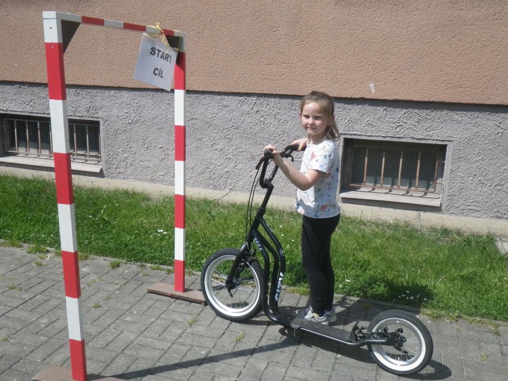 Vše vypadalo velice snadně, ale když se k jízdě na koloběžce přidaly dřepy, slalom, běh a skluzavka…noooo to už byl dojezd do cíle opravdu udýchaný.
