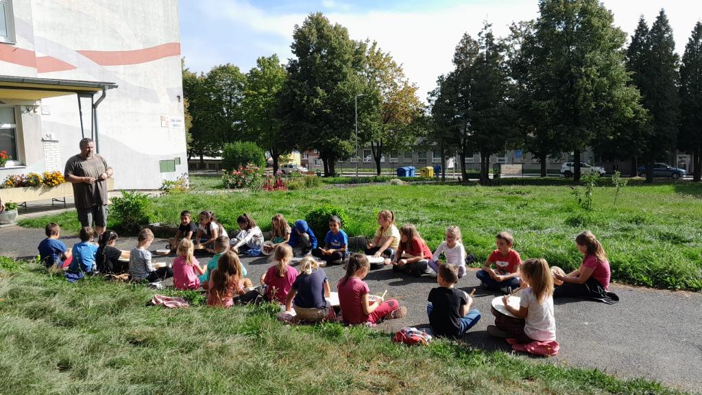 Dne 26. 9. 2023 jsme se školní družinou přišli na předvedení šamanských bubnů.