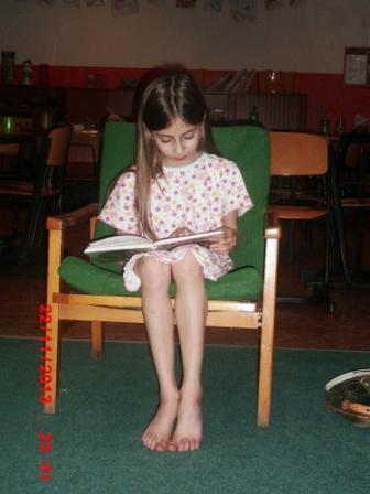 Při soutěži vyhládlo a tak po vyhlášení vítězů přišla na řadu „druhá večeře“. Pak už vybalování spacáků, převlékání do pyžam a nočních košilek, ukládání se…ale pozor – ne k spánku. Připravené křeslo pozvalo každého, kdo chtěl číst a vyprávět ostatním o své oblíbené knížce. Sešly se knížky dobrodružné, naučné, pohádkové, tajemné i hodně veselé. Každý se snažil a ostatní naslouchali…a jako když čte maminka na dobrou noc…někteří usnuli…