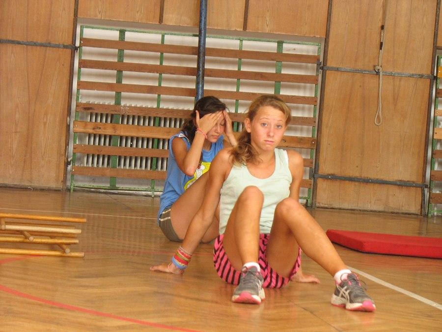 Rozcvičení proběhlo v pohodě. Znovu využíváme tělocvičnu, jelikož tu máme vše připavené z předchozího dne. Dopolední výběh je směrován do lesa tak, abychom se nepohybovali na přímém slunci. V plánu máme několik minutových bloků, kdy se formou indiánského běhu přesouváme nad Habartov.