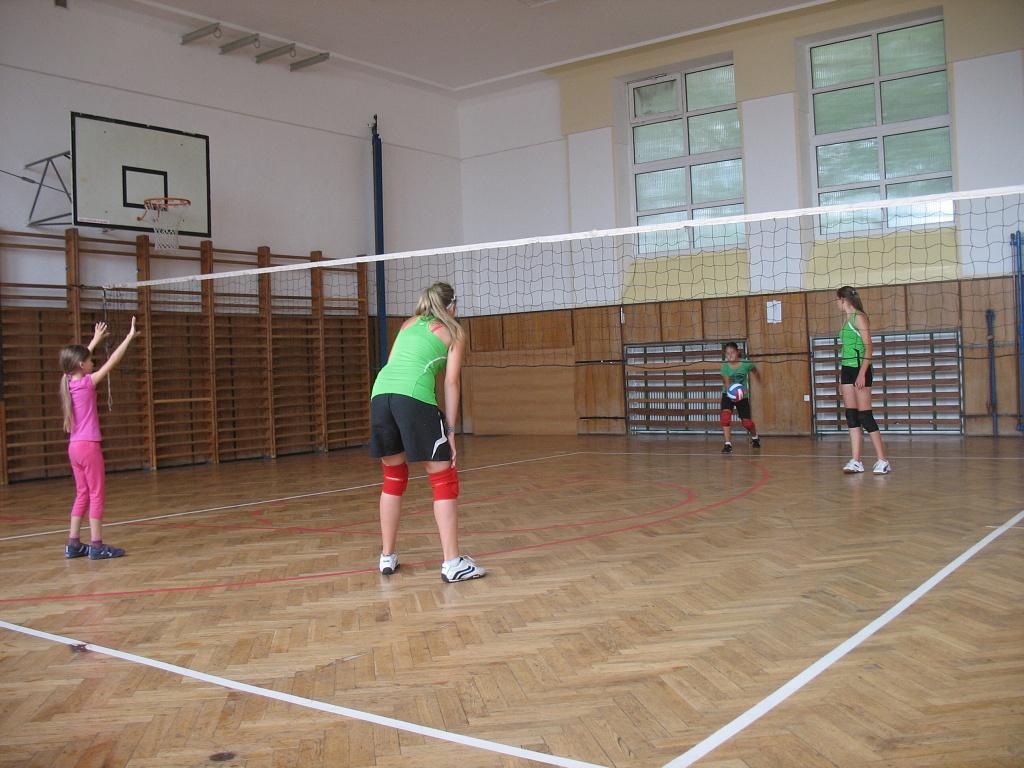 Poslední den soustředění. Počet hráček - osm. Na závěr volnější program. Nejprve je třeba dodělat testování. Po náročné přípravě (skokoměr je opravdu velmi těžký) se podařilo připravit nářadí měření výskoků. Nejvyšší dosah jednoruč ve výskoku s rozběhem má Kačka Pařízková (269 cm). Nejlepší je i z místa (259 cm). Snad se nebude bát smečovat, jelikož výška sítě je 220 pro žákyně. Kačka má i nejlepší absolutní výskok. Míša Kalousková zase skočila přes dva metry z místa (201 cm) a byla nejrychlejší v člunkovém běhu.