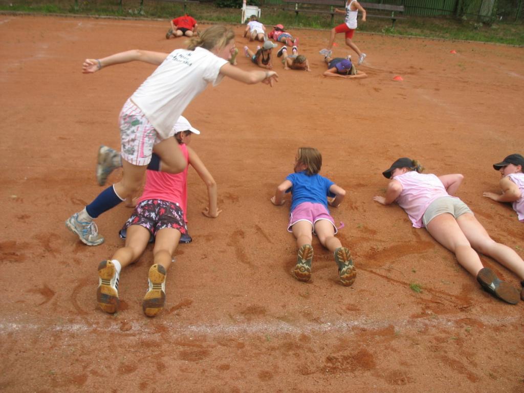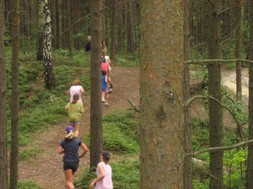 Odpolední trénink se nesl v duchu výběhu do lesa. Po cca 1,5 km jsme strávili příjemné chvíle vybíháním terénních nerovností. Čas na odpočinek jsme si vyplnili hrou na schovávanou a sběrem šišek k následné střelbě na stromy. Vše jsme si báječně užívali do chvíle, kdy nás překvapila rychle postupující studená fronta, která schladila naše rozpálené hlavy. Následoval rychlý úprk směrem k domovským kurtům. Příjemně prožité odpoledne jsme vyšperkovali zakousnutou sušenkou a s ohledem na neustávající déšť jsme zbytek tréninku přesunuli na školní chodbu, kde nerušeně probíhal kruhový trénink. Celkem bylo sedm stanovišť, které najdete zdokumentované ve fotogalerii.