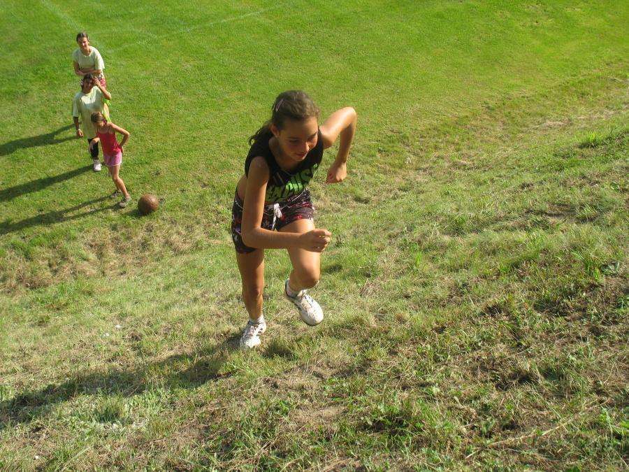 Máme za sebou dopolední tréninkový blok. Včerejší kondiční trénink už si vybírá své, únava roste. Nicméně na všech skupinách lze vysledovat alespoň dílčí zlepšení. K obědu jsme měli rajskou s kolínkama + polévka. Po obědě nás čeká chvilka klidu a následně dobrovolné cvičení, za které děvčata získávají bonusové body do celkového hodnocení. Dnes je to prosté odbití obouruč vrchem přes síť se snahou vytvořit maximální šňůru po sobě následujích odbití. Jako vše na soustředění i toto cvičení je rozděleno podle věkových kategorií, kterým odpovídá stanovený limit. Za splnění limitu lze získat až 100 bodů do žebříčku.