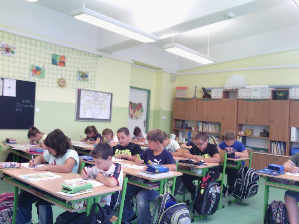 Až zvonění na přestávku, zvedá dětem hlavičky, některým se pomalu z ní kouří, jiným málem upadává, musejí si jí i podepírat.
