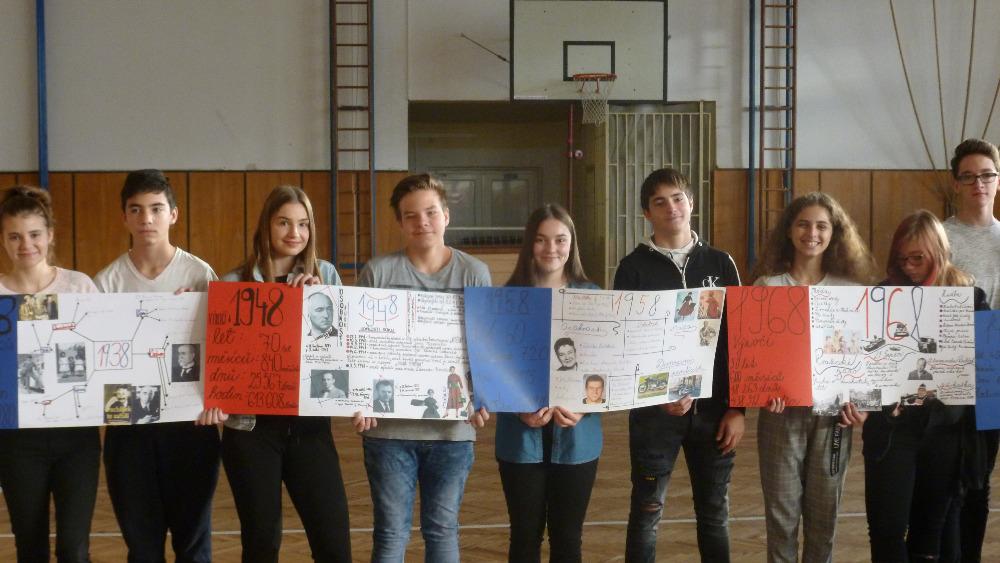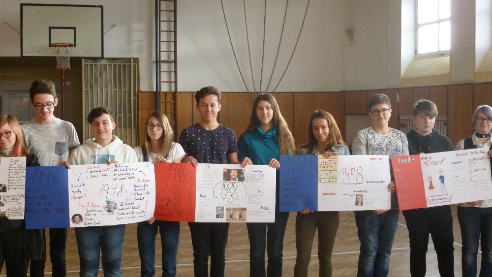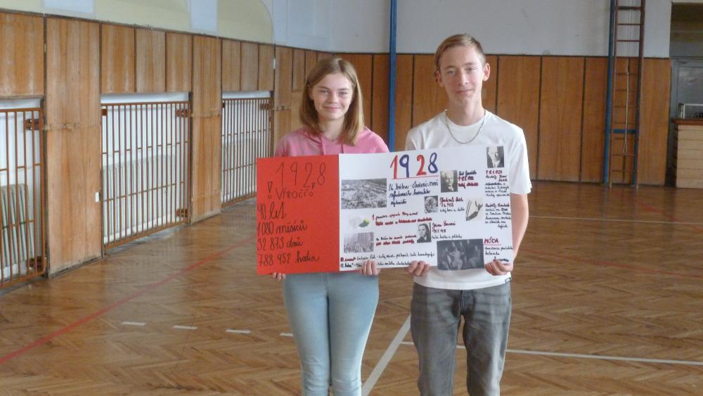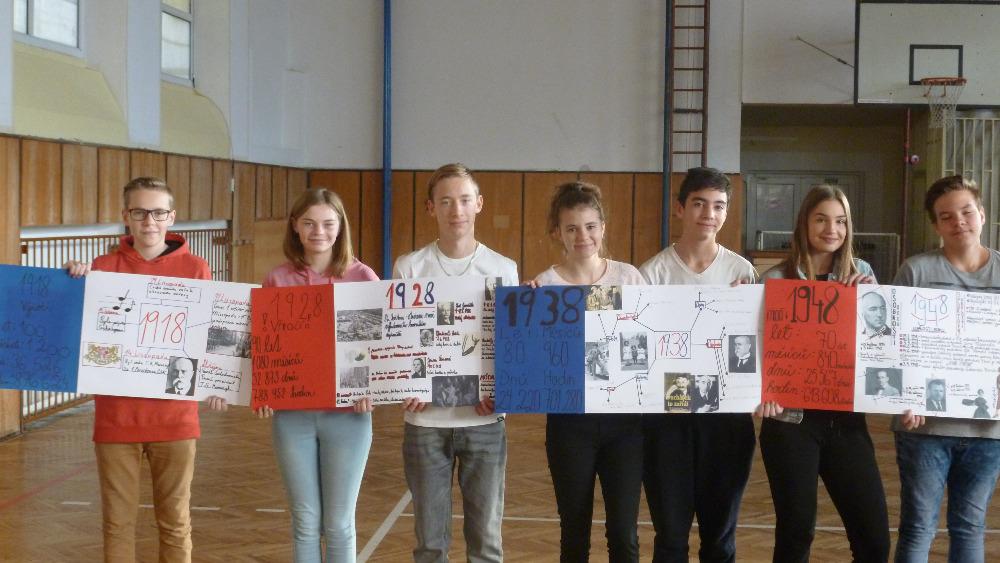 Projektu "Významné osmičky" se zúčastnila celá třída IX.A. Pracovat jsme začali již v loňském školním roce jako třída VIII.A. Nejdříve jsme se rozlosovali do deseti pracovních skupinek po 2 -3 žácích a každá skupinka si vylosovala "osmičkový rok". Potom začaly naše bádací, počítací a výtvarné práce. Zjišťovali jsme o daném roce informace z oblasti politické, kulturní, sportovní, hudební, z módy... Společně jsme vytvořili časovou osu, která v podobě "osmičkových roků" (1918, 1928, 1938, 1948...) mapuje celé století. Přijďte se podívat.