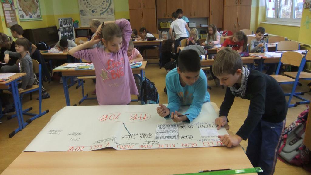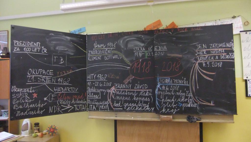 Od 5. do 16. listopadu jsme tvořili myšlenkovou mapu. Při té příležitosti jsme si zopakovali všechny získané vědomosti o významných osmičkách za uplynulých 100 let. Zaměřili jsme se pouze na největší akce loňského školního roku a počátku letošního roku 2018/19. Práci doplnily fotografie naší třídy, které nám připomněly získané vědomosti, ale i prožitky dějin. Tvoření myšlenkové mapy nás velmi bavilo. Tuto pedagogickou metodu budeme využívat i při dalších vzdělávacích příležitostech.