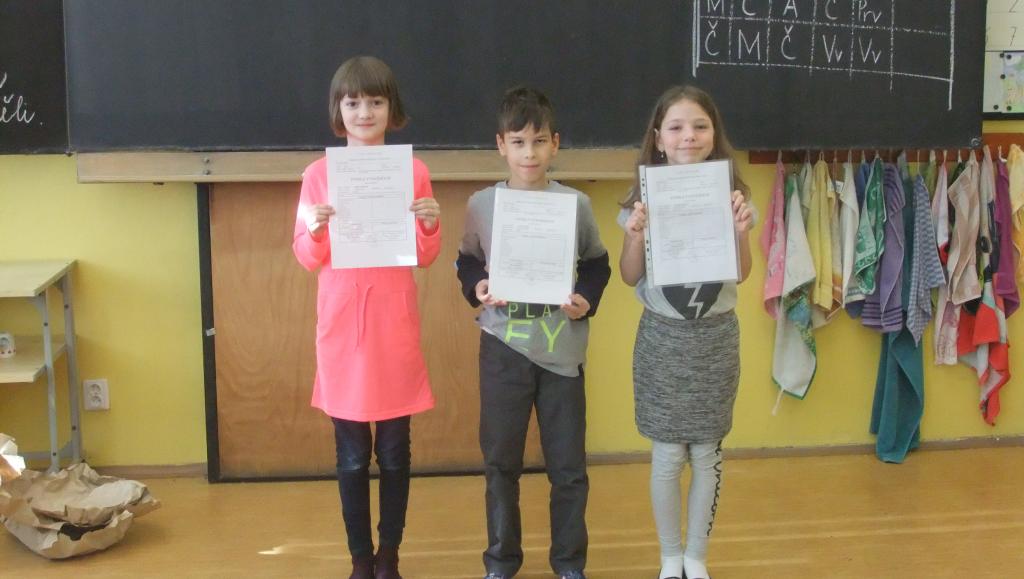 Poslední lednový den je dnem hodnocení práce za uplynulé pololetí školního roku 2018-19. Někdo byl úspěšný a někdo musí v novém pololetí věnovat školní práci více úsilí. Věřím, že na konci třetí třídy, budou naše vysvědčení co možná nejlepší. Zvláštní pochvala patří trojici žáků, kteří dostali na vysvědčení samé jedničky. Tato pochvalu si zasluhuje Adam Choděra, Kristýna Kunešová a Adéla Rychliková. Jedničkářům blahopřeji a věřím, že samé jedničky jim zůstanou i ve druhém pololetí letošního školního roku. Mgr. Jarmila Janíková, tř. učitelka