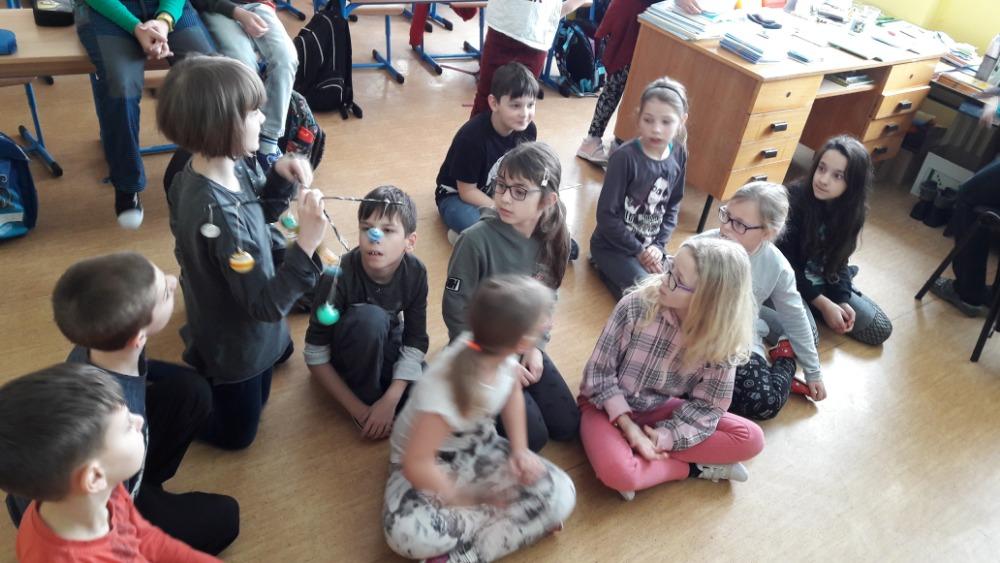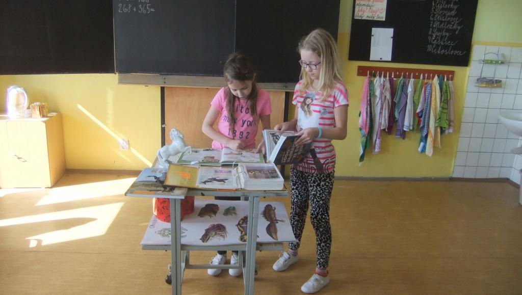 Začínáme pracovat na přenášení informací spolužákům ve třídě. Následující fotografie ukazují pohled do hodin prvouky.