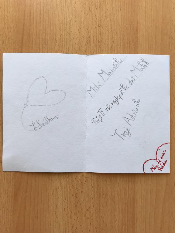 S béčkaři jsme se domluvili, že je po třídních schůzkách a našim maminkám jsme v poslední době moc radosti nedělali – známky, chování, průšvihy, které omylem praskly atd… No prostě bylo toho dost, nejvyšší čas udělat smutné oči a vzít dárek do vlastních rukou. Chtěli jsme udělat jednoduché přáníčko, ke kterému by stačily základní věci – papír, pastelky, tužka, nůžky.