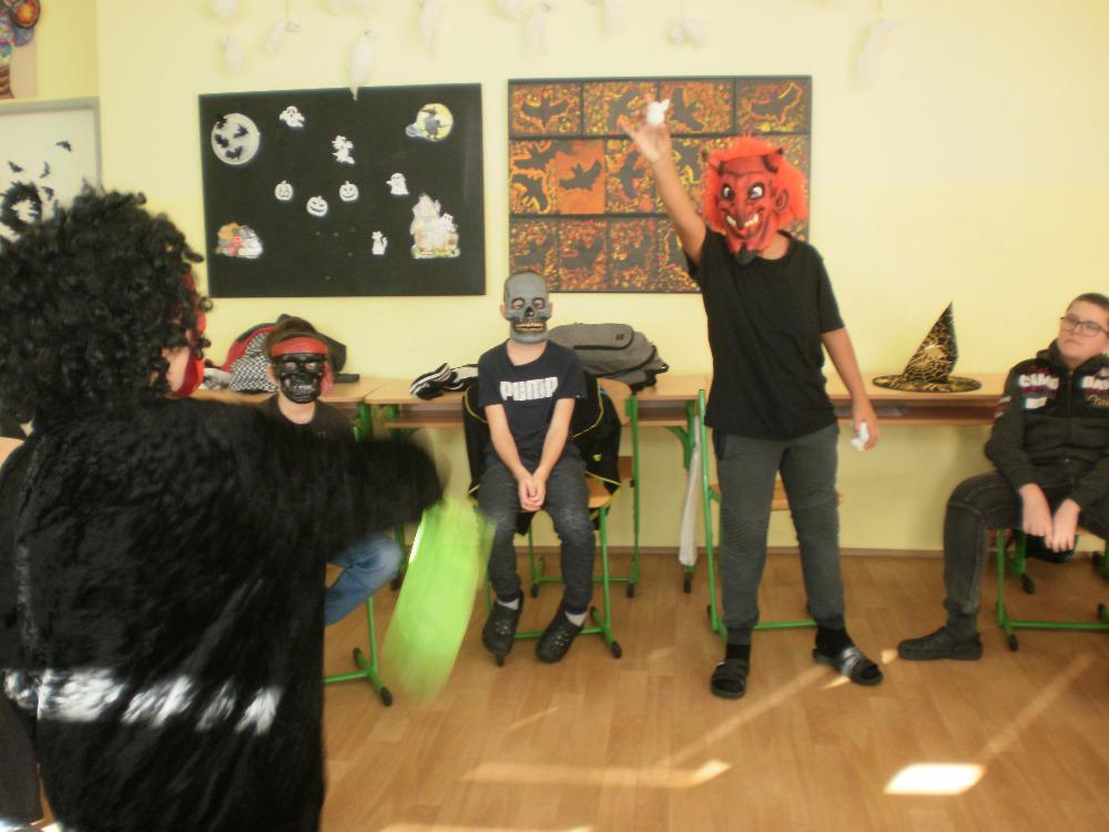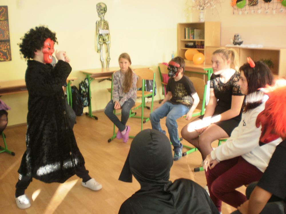 31. října oslavují ve Velké Británii svátek „Halloween“. Učíme se angličtinu, a proto jsme se rozhodli připojit k oslavám. Ve volných chvílích jsme si vyzdobili naši třídu a těšili se na kouzelný čtvrtek. Tento den jsme dorazili do školy ve strašidelných kostýmech. Z naší paní učitelky se stala čarodějnice Hexana. Zahráli jsme si spousty zábavných her. Zadováděli jsme si v kruhu plném strašidel. Hodina utekla jako voda v řece a my se museli rozloučit. Těšíme se na další zábavnou třídnickou hodinu.