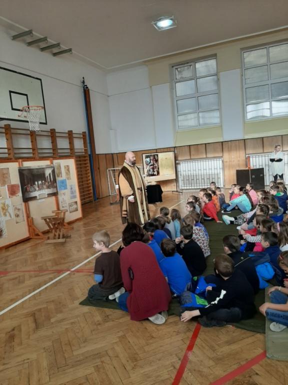 V pondělí 9. 12. 2019 se u nás v tělocvičně uskutečnila akce „ Leonardo da Vinci“. Připravila si jí pro nás agentura Pernštejni, jež tento vzdělávací program věnovala pětistému výročí úmrtí tohoto italského génia. V první části jsme velmi pozorně sledovali hrané divadlo o Leonardově životě a jeho díle. Druhá část byla pro prvňáky mnohem zajímavější, protože jsme měli možnost si prohlédnout modely některých vynálezů a také si je vyzkoušet.