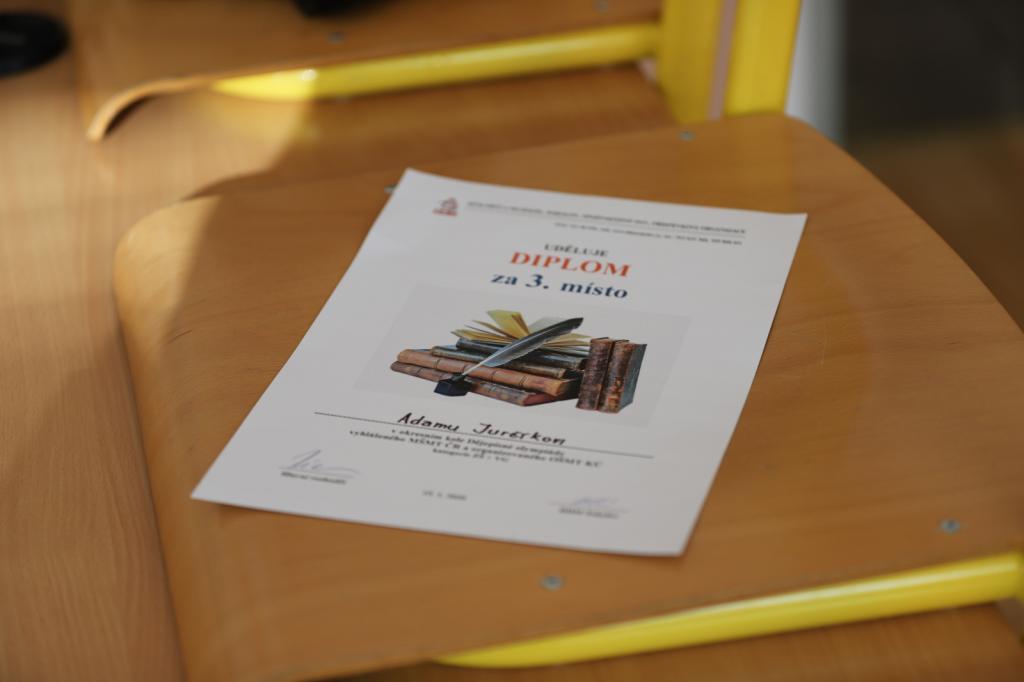 Ve středu dne 15. ledna vyjel vítěz školního kola Dějepisné olympiády, žák osmé A třídy Adam Jurčík spolu s ředitelem školy panem Mgr. Václavem Riedlem, který je již po mnoho let součástí realizačního týmu tohoto historického klání, do nedalekého Sokolova, kde se v tamějším domě dětí a mládeže konalo okresní kolo výše uvedené soutěže. Na něj se přijela se svými znalostmi utkat se soupeři třicítka nejlepších řešitelů základní úrovně ze základních škol někdejšího okresu Sokolov. Ani v této značné a náročné konkurenci se náš Adam neztratil, ba co více, po skvělém výkonu, kdy získal stejně jako ještě jeden účastník 64 z 80 možných bodů, se prodral do rozstřelu o konečné druhé místo. V nadstavbovém úkolu byl pak pouze o jediný bodík méně šťastný než jeho konkurent, což pro něj nakonec znamenalo skvělé třetí místo. Tím si Adam vybojoval také právo postupu do kola krajského. Po Vojtovi Svobodovi, který před časem okresní kolo dokonce vyhrál, je to pro naši školu během několika posledních let další skvělý výsledek, který může Adam navíc ještě dále vyšperkovat. Držme mu tedy palce a zároveň je na místě mu z celého srdce poděkovat za skvělou reprezentaci naší školy a potažmo i města Habartova.