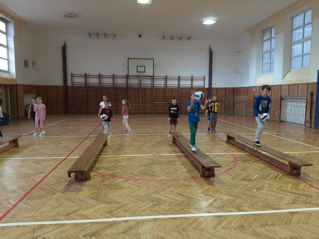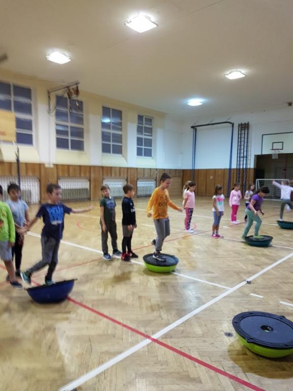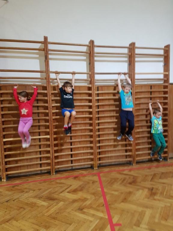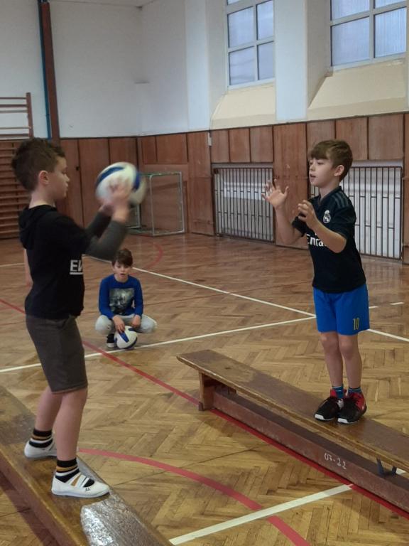 Tělocvik máme rádi. Je tolik možností, čím naplnit hodinu. Házíme a chytáme míč, a to i v pohybu,dokonce i v pohybu na lavičkách. Cvičíme na žebřinách. Vyzkoušeli jsme cvičení na balančních pomůckách, zdoláváme překážkové dráhy, hrajeme různé pohybové hry a máme hodně rádi vybíjenou. Je toho ale samozřejmě daleko víc.