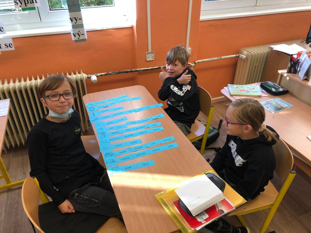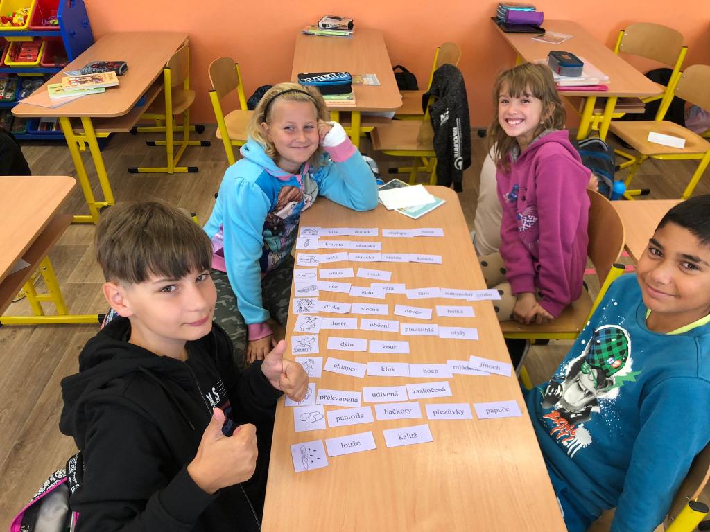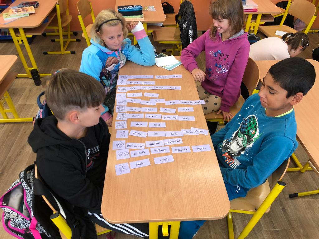 V hodinách českého jazyka opakujeme učivo nižších ročníků. Jelikož v loňském školním roce probíhala výuka převážně distančně, letos si užíváme společné chvíle ve třídě. Proto pracujeme různými způsoby a jedním z nich je také skupinová práce. Dnes jsme hledali mnohožnačná slova. Zjistili jsme, že k jednomu obrázku můžeme přiřadit několik pojmenování. Zároveň jsme si osvojili slova, která pro nás byla neznámá a tím jsme si rozšířili svoji slovní zásobu.