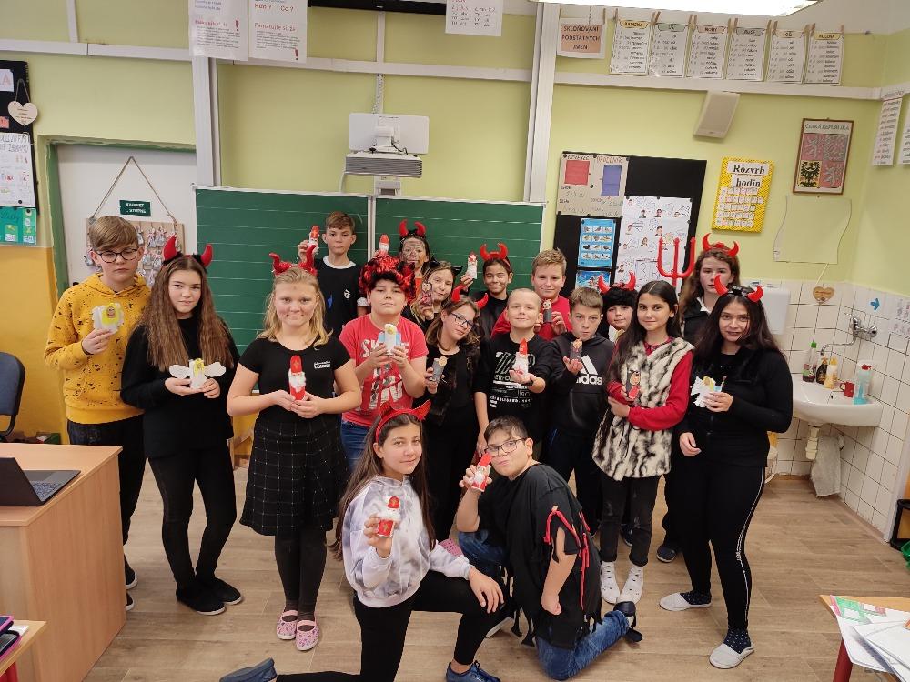 3. 12. 2021 se naše třída 5.A změnila v malé peklíčko. Hemžilo se to tu čerty a čerticemi, samé umouněné tváře, špičaté rohy a čertovsky špinavé oblečení. Čerti se museli učit čertovské matematice a českému jazyku. Moc se snažili a zasloužili si i čertovsky dobrý sladký balíček. Pěkně prožitý den.