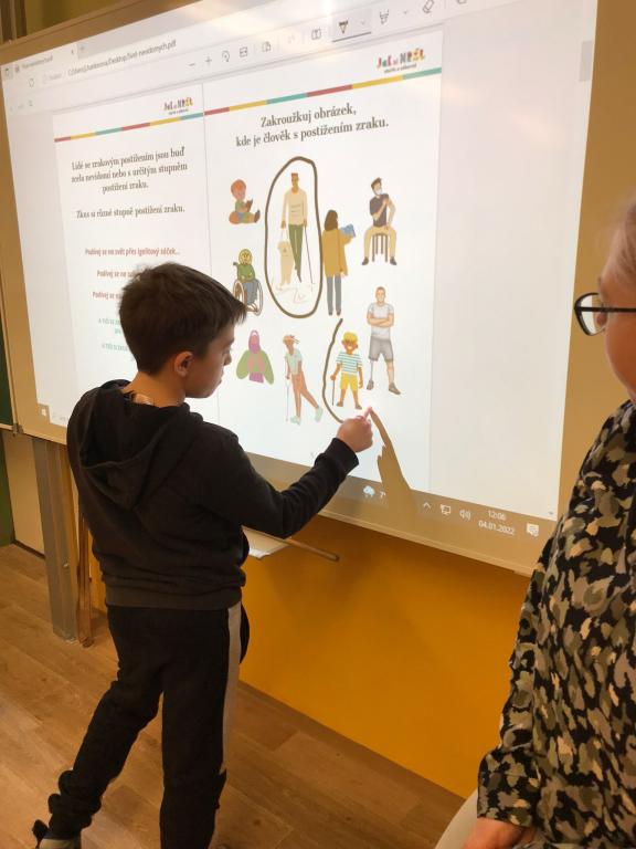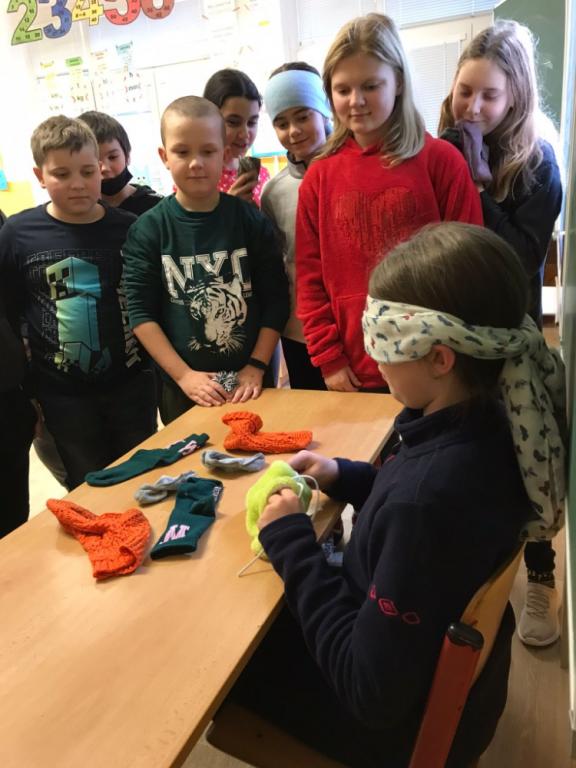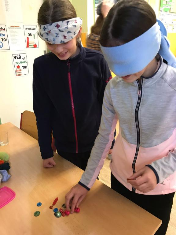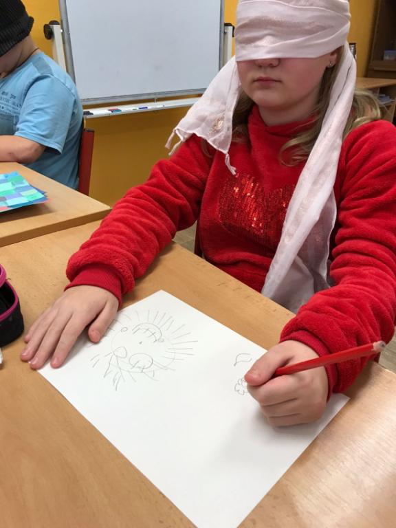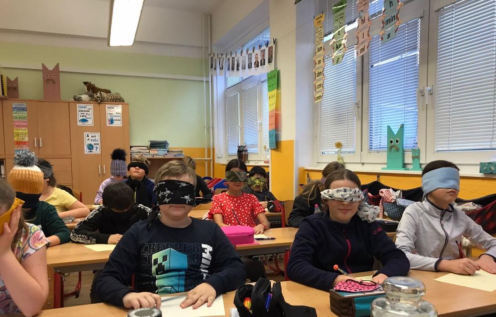 Na 4. ledna připadá Světový den Braillova písma. Vyzkoušeli jsme si, jak se může v různých situacích chovat a cítit nevidomý člověk. Pověděli jsme si jak vzniklo Braillovo písmo (příběh malého chlapce Louise Brailla, který oslepl ve 3 letech) a vyzkoušeli si napsat tímto písmem své jméno. S různými pomůckami jsme si okolí prohlíželi očima člověka, který má oční zákal, trubicové vidění či nevidí vůbec. Děti si oči zavázaly šátkem a vyzkoušely si: kreslení jednoduchých obrázků, hledaly 2 stejné knoflíky v hromádce, párovaly ponožky, hmatem poznávaly svého spolužáka nebo si nalévaly vodu do sklenice. Také jsme si řekli spoustu důležitých informací o tom, jak pomoci nevidomému člověku, jak takový člověk vykonává běžné činnosti v domácnosti, jaké mají nevidomí lidé pomůcky, které jim usnadňují život. Na interaktivní tabuli jsme pracovali s pracovními listy s touto tématikou. Děti si to velmi užívaly, zaujatě poslouchaly a tento zajímavý den si pochvalovaly.