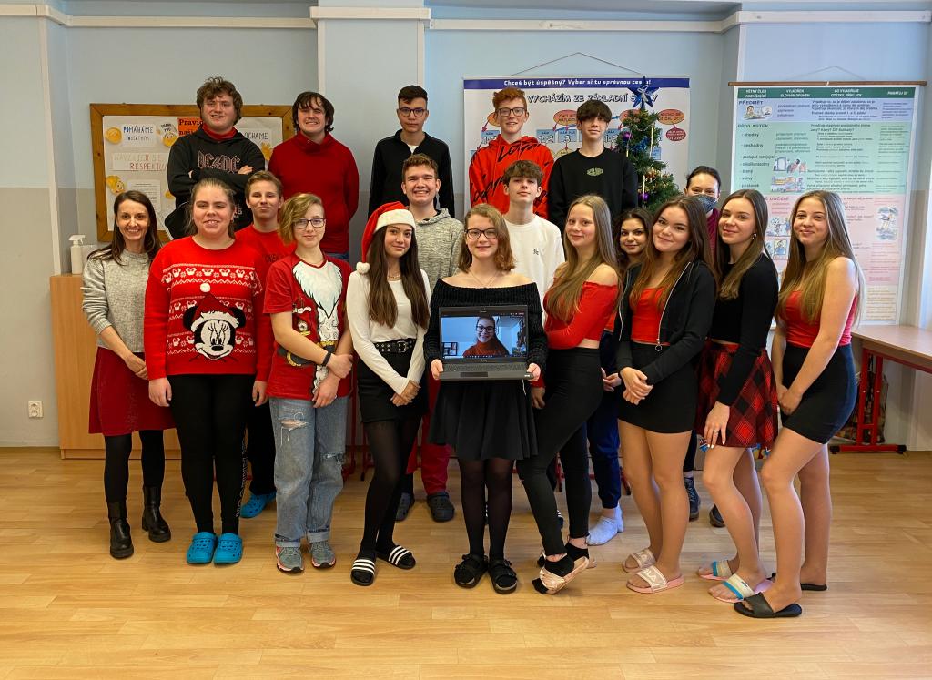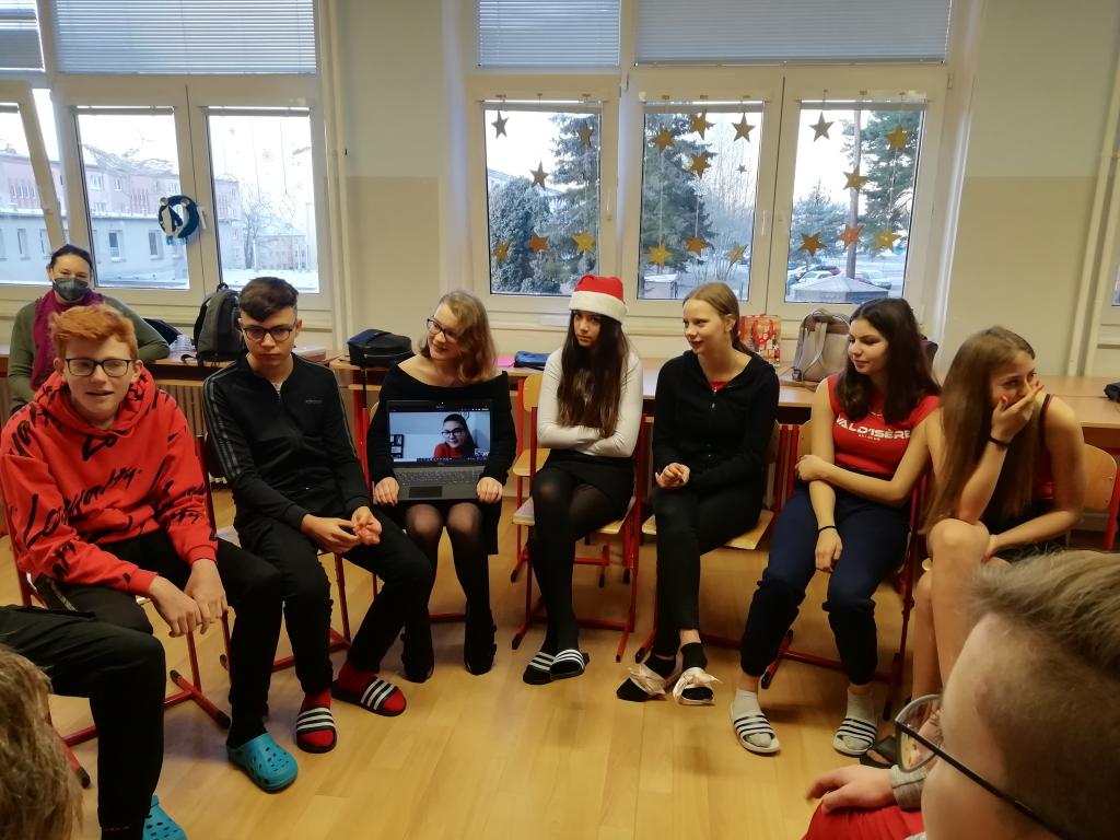 23.12.2021 se konala každoroční vánoční besídka. Bohužel v tento den jsem nemohla být ve třídě s mými spolužáky a užít si poslední besídku v 9. ročníku, ale byla jsem doma v karanténě. Samozřejmě mě to mrzelo, ale paní učitelka mi umožnila spojit se se třídou online. Bylo to super, hodně jsem se v ten den nasmála. Připojila jsem se hned po 8. hodině a byla jsem tam s nimi celé čtyři hodiny kromě velké přestávky.