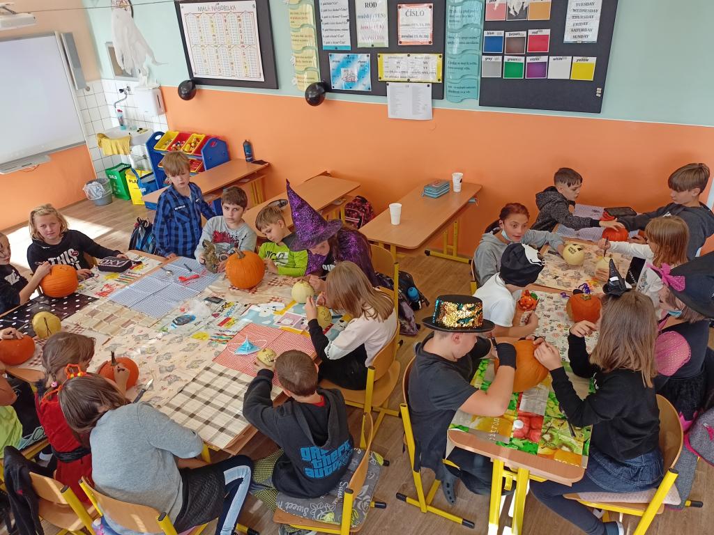 22.10. jsme oslavili v duchu strašidel naši výuku. Halloweenská matematika a výtvarná výchova měla velký úspěch u žáků. TU Monika Lapáčková a AP Lenka Melzerová