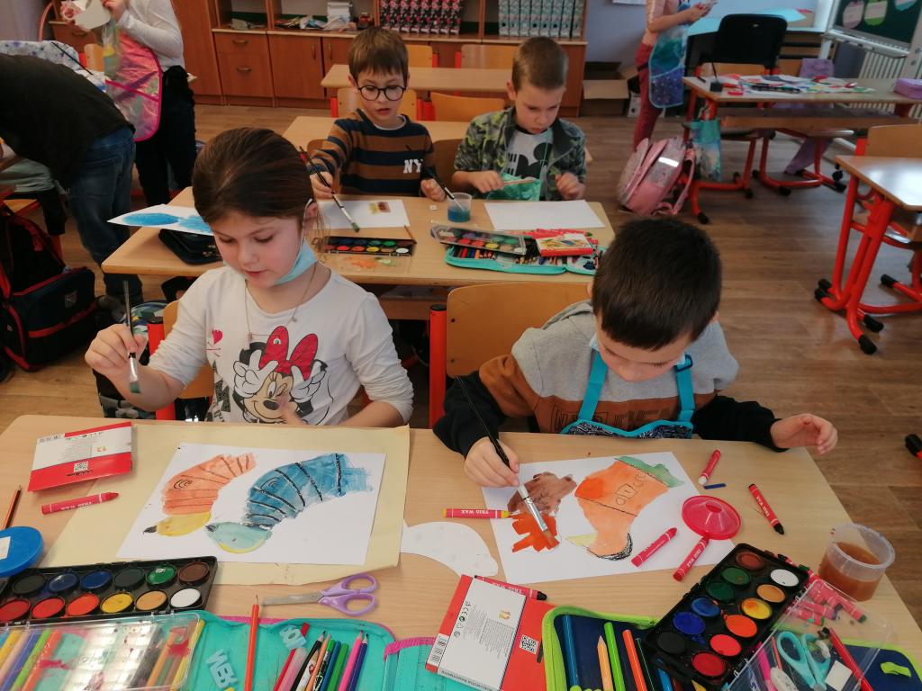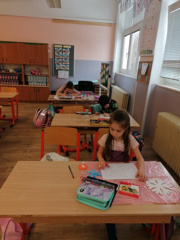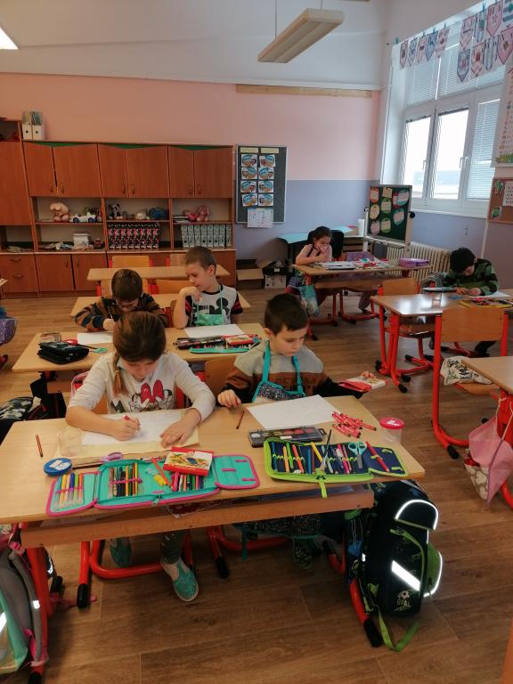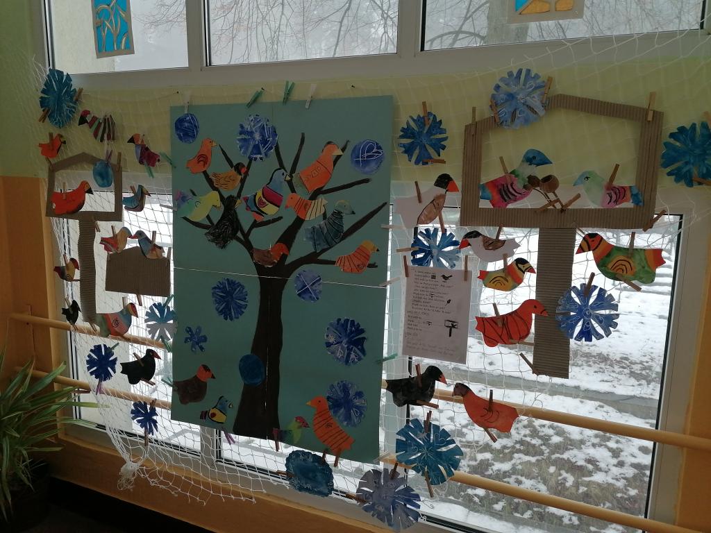 V tématu Ptáci v zimě jsme pokračovali i v hod. VV a PV.