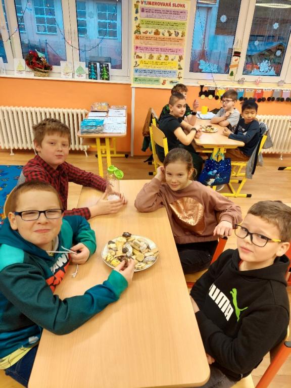 Protože jsme si bohužel nemohli užít Vánoční besídku před Vánocemi všichni společně ve škole, jelikož jsme měli distanční výuku, rozhodla jsem se, že děti o tuto vzpomínku nepřipravím a uspořádáme si Vánoční besídku „po prázdninách“. Po Novém roce jsme si naplánovali ve třídě tento krásný den. Děti mohly donést cukroví, které jsme pak všichni ochutnávali. Společně jsme zavzpomínali na Vánoce, vyprávěli si nejkrásnější zážitky z Vánoc, největší radosti z dárků i nejsilnější okamžiky, které jsme prožili. Zazpívali jsme si vánoční koledy, děti mlsaly cukroví, popíjely teplý čaj a sledovaly pohádku o malém sobíkovi, který se jmenoval Nico. Celý den jsme ukončili rozdáváním dárků. Každé z dětí si vylosovalo lísteček, kterému spolužákovi dáreček přinese. Vzájemně si děti daly překrásné dárky, u kterých jsme se všichni společně moc pobavili. Od paní učitelky a paní asistentky děti dostaly stejné ponožky, ze kterých měly opravdu velikánskou radost.