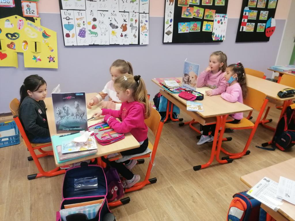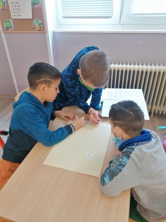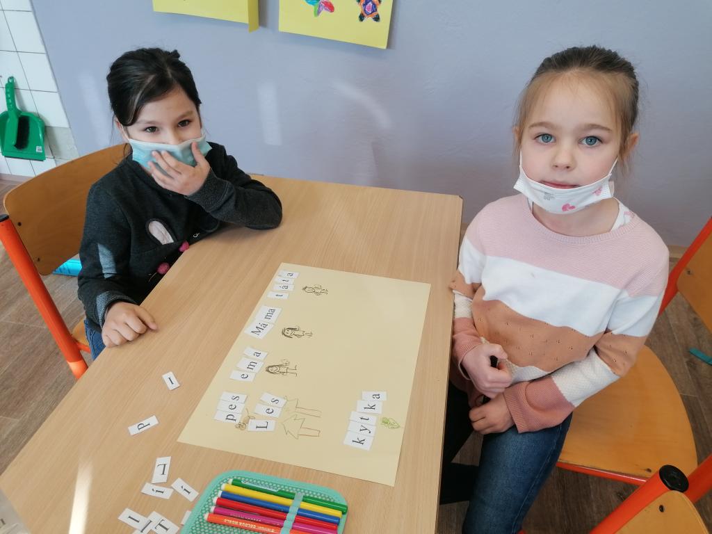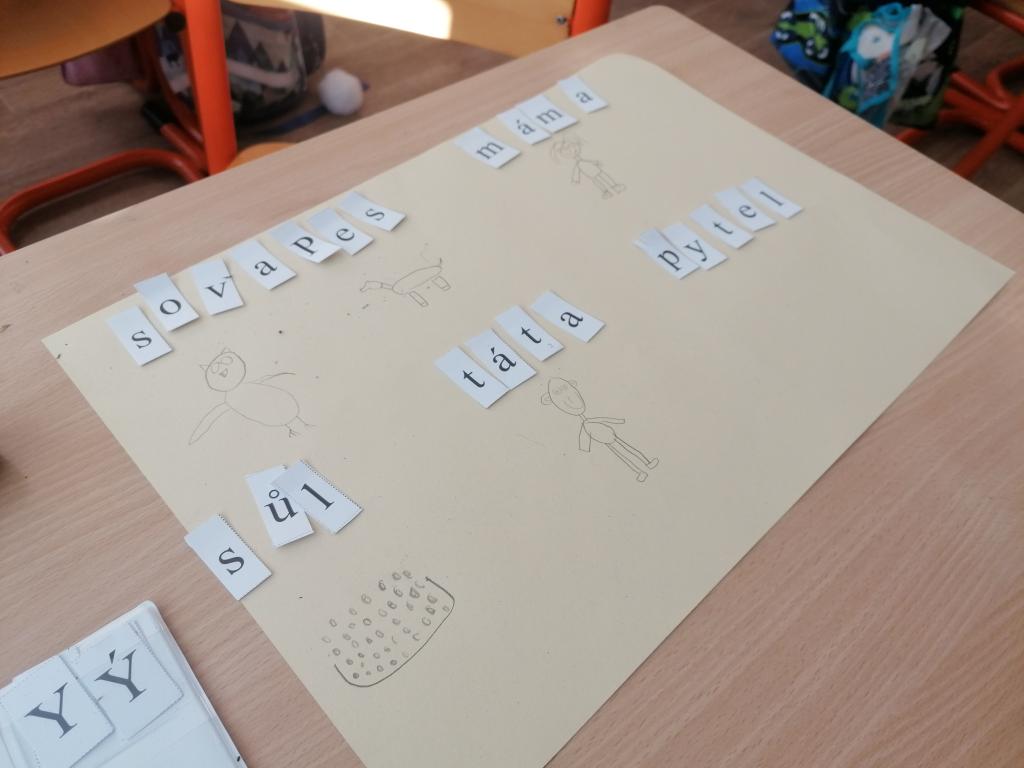 Během práce ve skupinkách jsme vyzkoušeli práci s textem (porozumění daného textu) a práci se skládací abecedou. Dětem se skupinové práce moc líbí.