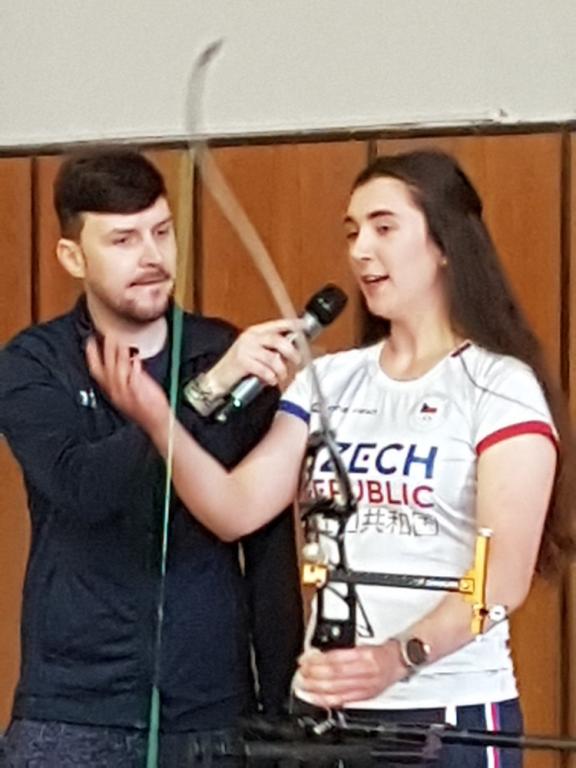 A co to pro nás znamenalo? Dopoledne dorazil tým několika lidí ze Sazka olympijského víceboje společně s hlavní představitelkou celé akce, kterou byla čtyřiadvacetiletá několikanásobná mistryně ČR v terénní i terčové lukostřelbě a účastnice olympijských her v Tokiu Marie Horáčková.