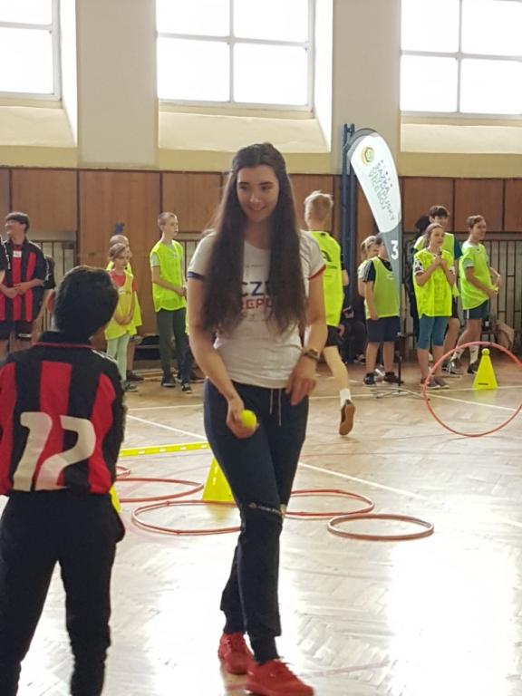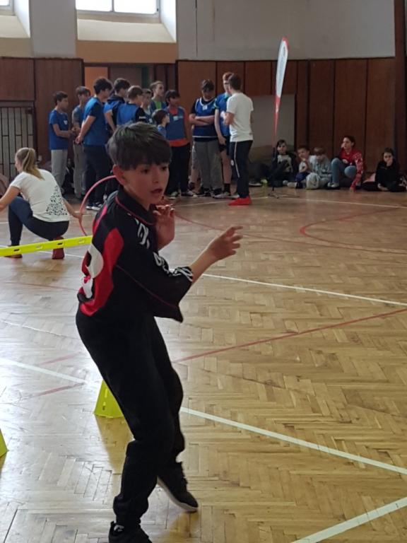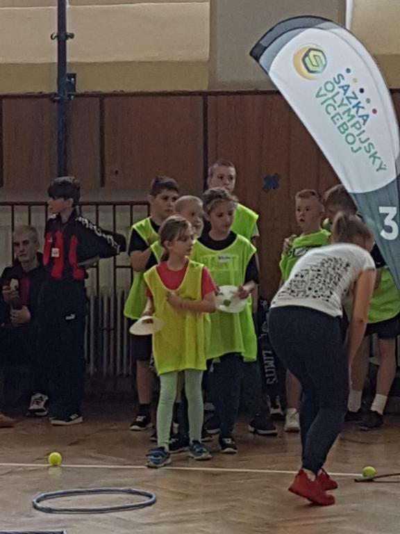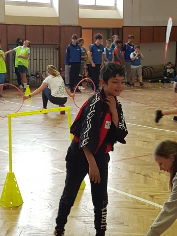 Byly sestaveny čtyři sportovní týmy, každý v obsazení žáků od třetích do devátých tříd. Celá akce začala slavnostním představením olympioničky, která nás seznámila se svým sportovním náčiním a pronesla o sobě několik vět, poté již zahájila pro všechny žáky - sportovce rozehřívací rozcvičku. Následně se už pokračovalo v samotné soutěži. Jednalo se o kruhový provoz se čtyřmi stanovišti a každé družstvo strávilo na jednom místě15 minut. Všichni žáci projevili velkou snahu, prokázali bojovnost a hlavně byla patrná radost a užívání si celého sportování a slavnostní atmosféry, která nás provázela v doprovodu s hudbou po celou dobu akce.