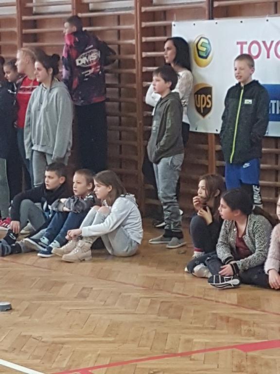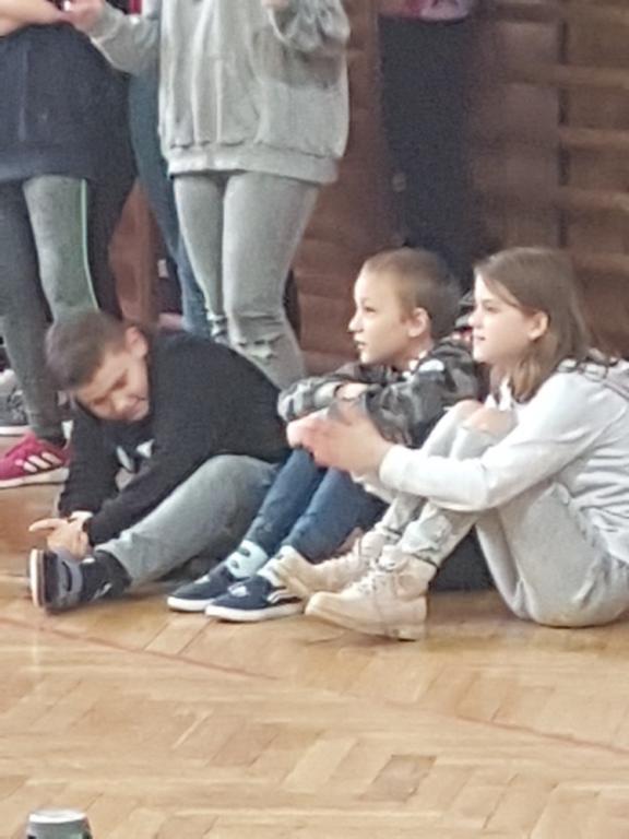 Bohužel díky velmi chladnému počasí se akce nemohla uskutečnit venku na hřišti, ale v tělocvičně. A proto z důvodu omezeného místa se ostatní žáci školy, diváci, museli prostřídat. Každá třída tedy viděla pouze část akce, ale i tak doufám, že si aspoň i tu chvilku užili.