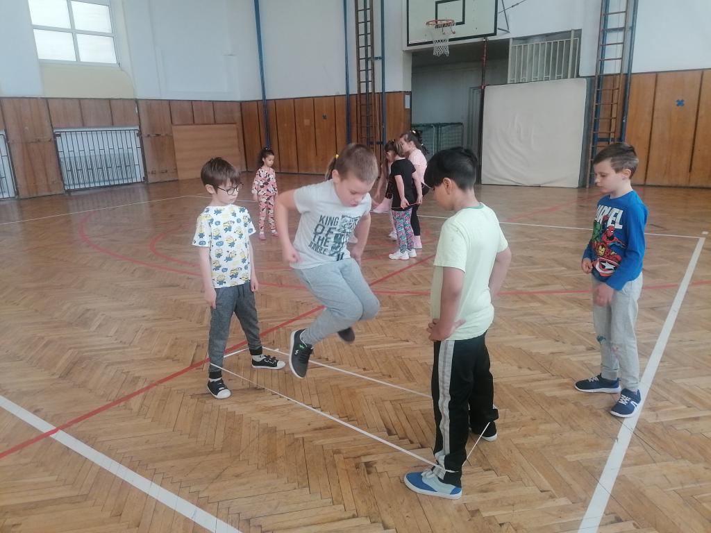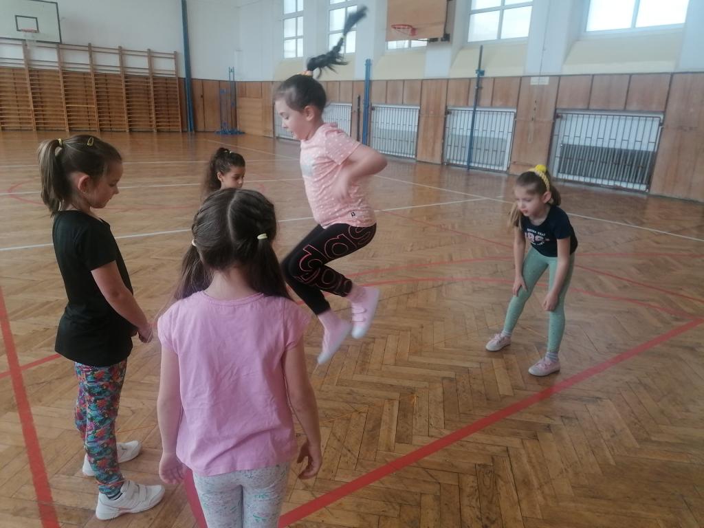 V hodinách prvouky a českého jazyka jsme si povídali o aktivitách, které lze provozovat venku, když už panuje pěkné jarní počasí. Cvrnkání kuliček, skákání panáka, jízda na kole nebo bruslích, pletení venečků a skákání přes gumu, které jsme také vyzkoušeli v hodině tělesné výchovy. Dětem se hra moc líbila.