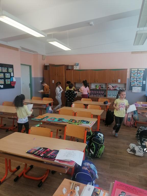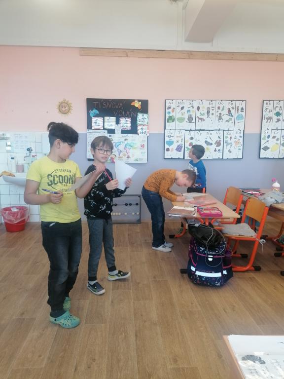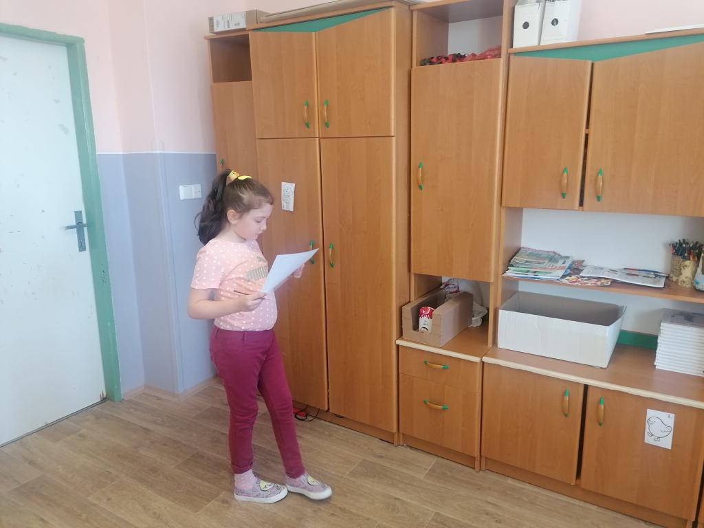 V hodině ČJ jsme si poprvé vyzkoušeli tzv. běhací čtení s tématem Velikonoc. Děti četly jednotlivé věty a hledaly k nim správné obrázky s písmeny do tajenky. V hod. PV jsme vytvořili Velikonoční přání, které si děti poslední den před prázdninami odnesly domů.