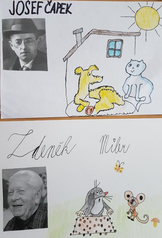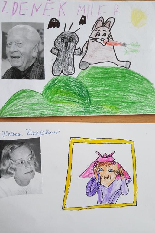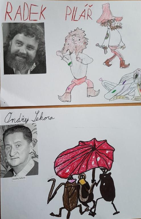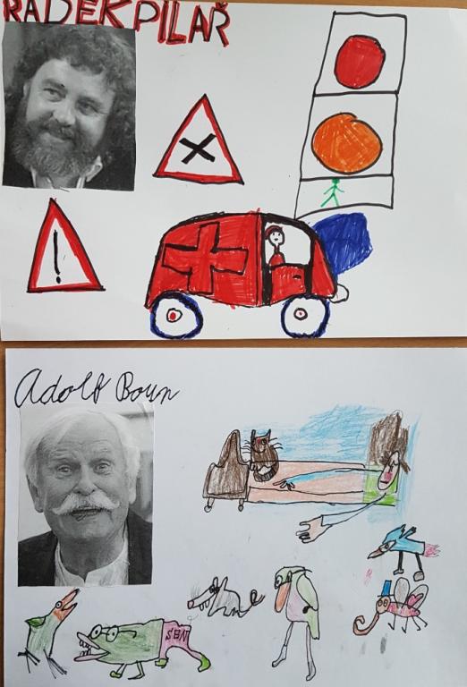 Při jedné z výtvarných výchov se děti tentokrát věnovaly kreslení obrázků podle známých českých dětských ilustrátorů. Z domova si přinesly dětskou knihu s ilustracemi, a potom už bylo zadání jasné. Co nejvěrněji podle jakékoliv vybrané předlohy nakreslit obrázek. Výtvarné dílko se doplnilo jménem ilustrátora a také jeho fotografií. Výsledek mnohých dětí se opravdu vydařil. Posuďte sami!