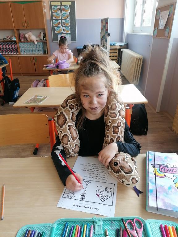 Děti v hodinách českého jazyka a matematiky plnily úkoly v pracovních listech s touto tématikou. Vytvořily si vlastní čarodějnici, kterou si pojmenovaly, určily věk a přiřadily jí nějaké superschopnosti. Podle přečteného textu dokreslovaly obrázek a také "vařily" elixír z daných ingrediencí.