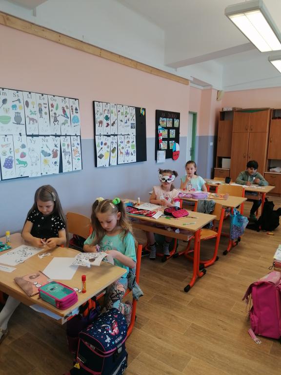 I my jsme si tento den hezky oslavili. V hodinách českého jazyka a matematiky jsme vypracovávali zábavné úkoly zaměřené právě na Den dětí. V pracovní výchově jsme si vyrobili veselého klauna. Tento den jsme se též tematicky oblékli. Někteří přišli v pestrém oblečení a někdo měl dokonce veselou masku.