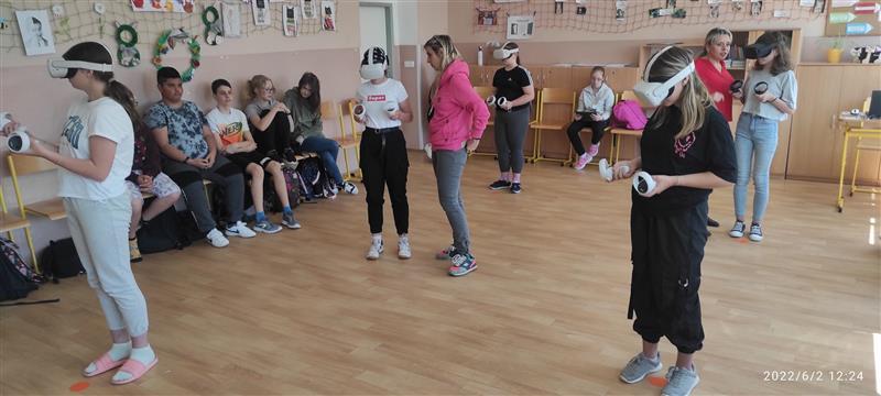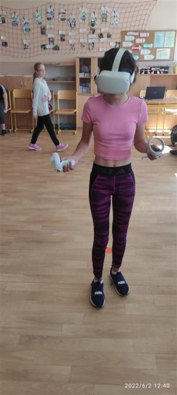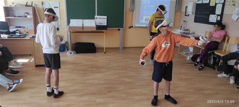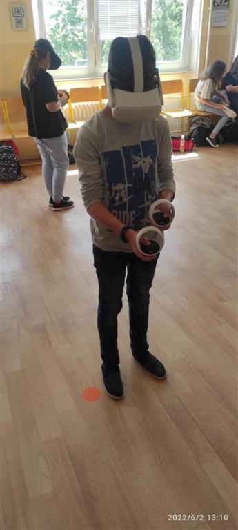 Na jaře k nám přijely dvě paní školitelky z akademie VR, aby nás seznámily s historií. Zajímavá věc byla ta, že první VR byla vytvořena roku 1962 a vypada jako herní automaty. Poté nám dovolily vyzkoušet VR v brýlích. Poslouchali jsme instruktorku, abychom se začali orientovat. Jako první jsme museli nasadit brýle a nastavit si ruce a poté výšku. Pak nás to pustilo do hlavní místnosti, kde jsme si vybrali první dvě hry. Objevili jsme se v barevné místnosti, kde byly různé věci na stole. Hlavní věci pro nácvik byly kazety, první kazeta nás pustila do tanečního sálu s robůtkem, kde jsme se často pobavili a druhá hra byla střílečka, tam jsme museli mít největší skóre. Bohužel naše třídní učitelka Romana Sitařová si VR brýle nevyzkoušela, ale určitě má památku na to, jak jsme ji při střílečce malém dali pěstí