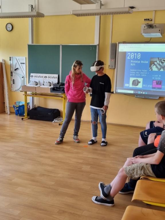 V září letošního školního roku 2022/23 se žáci naší třídy již podruhé ocitli na pár minut v realitě, která vlastně neexistuje. Po podrobném vysvětlení dostali na oči speciální brýle a do rukou ovladače. Stačilo sebrat odvahu, zmáčknout start a ... vykročit.