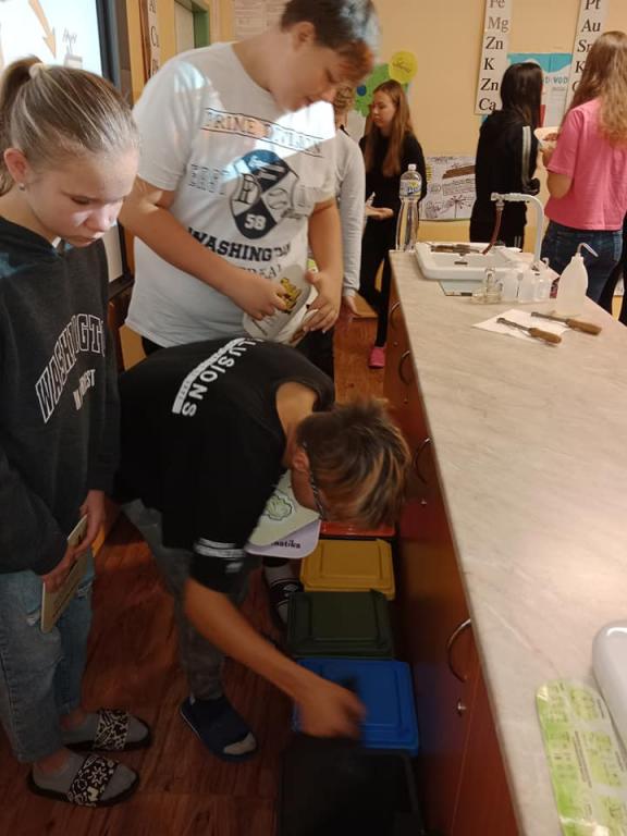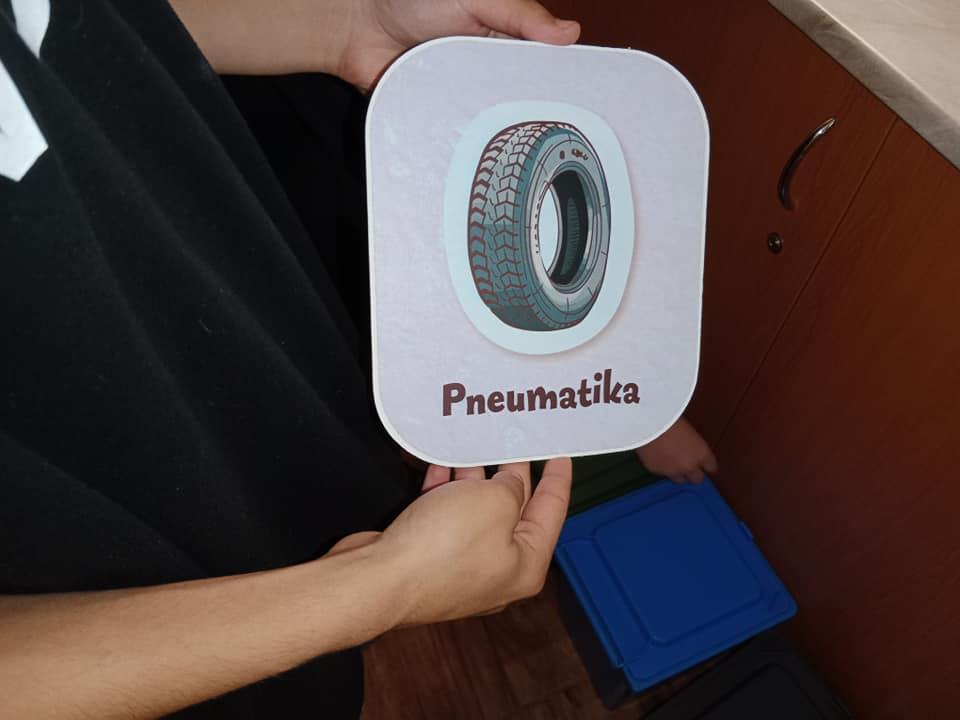 Měli jsme možnost vyzkoušet si své znalosti o třídění odpadu. Dostali jsme kartičky s různými odpady a měli jsme za úkol vhodit odpad do správného kontejnerku.