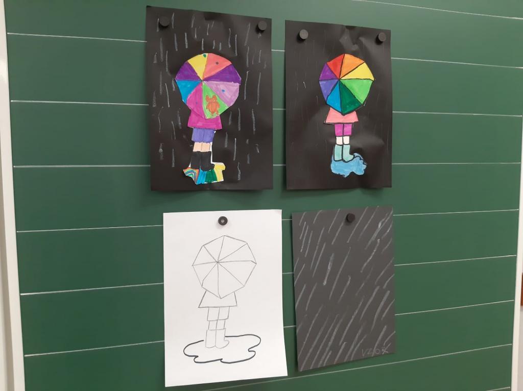 Za okny nám fouká vítr, poletují listy, občas zaprší, ráno panuje hustá mlha a dny se zkracují. Nastal nám podzim. Toto roční období máme rádi. Vše okolo nás je krásně barevné a zářivé. V hodinách výtvarné výchovy jsme si podzim připomněli výrobou obrázků s tematikou deštivého počasí. Moc nás tvoření bavilo. Jak se nám výrobky tvořily a povedly, se můžete přesvědčit níže v galerii.