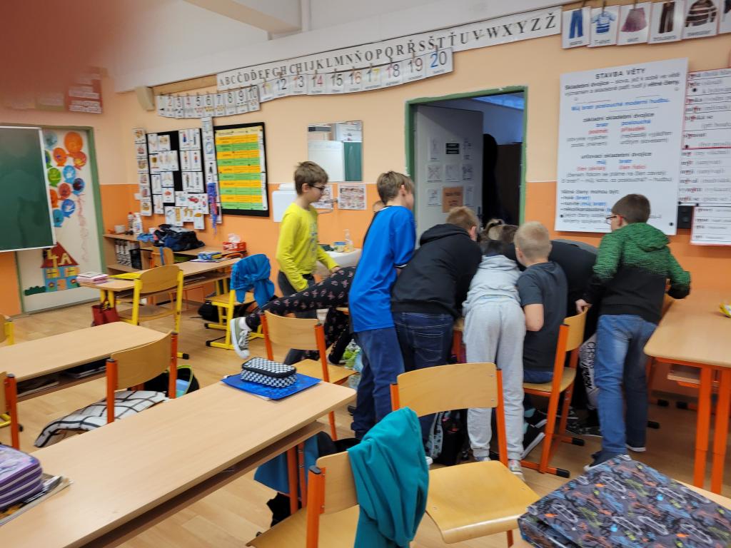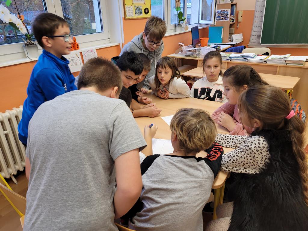 Soutěž mezi třídami 4. A a 4. B - v hodině českého jazyka si žáci procvičili abecedu a slovní zásobu.
