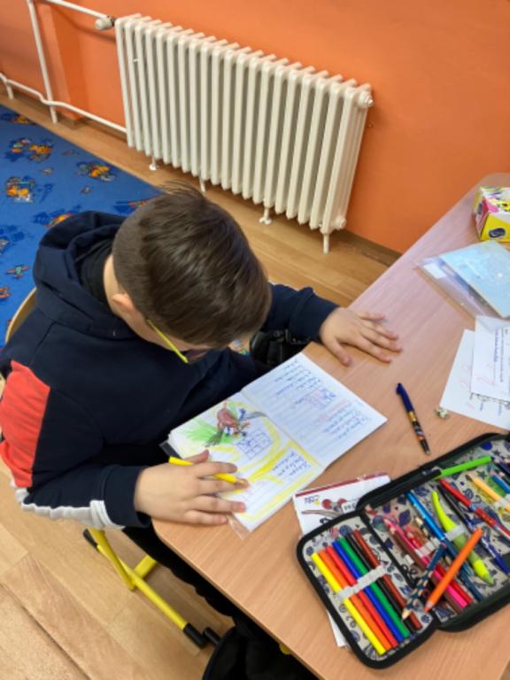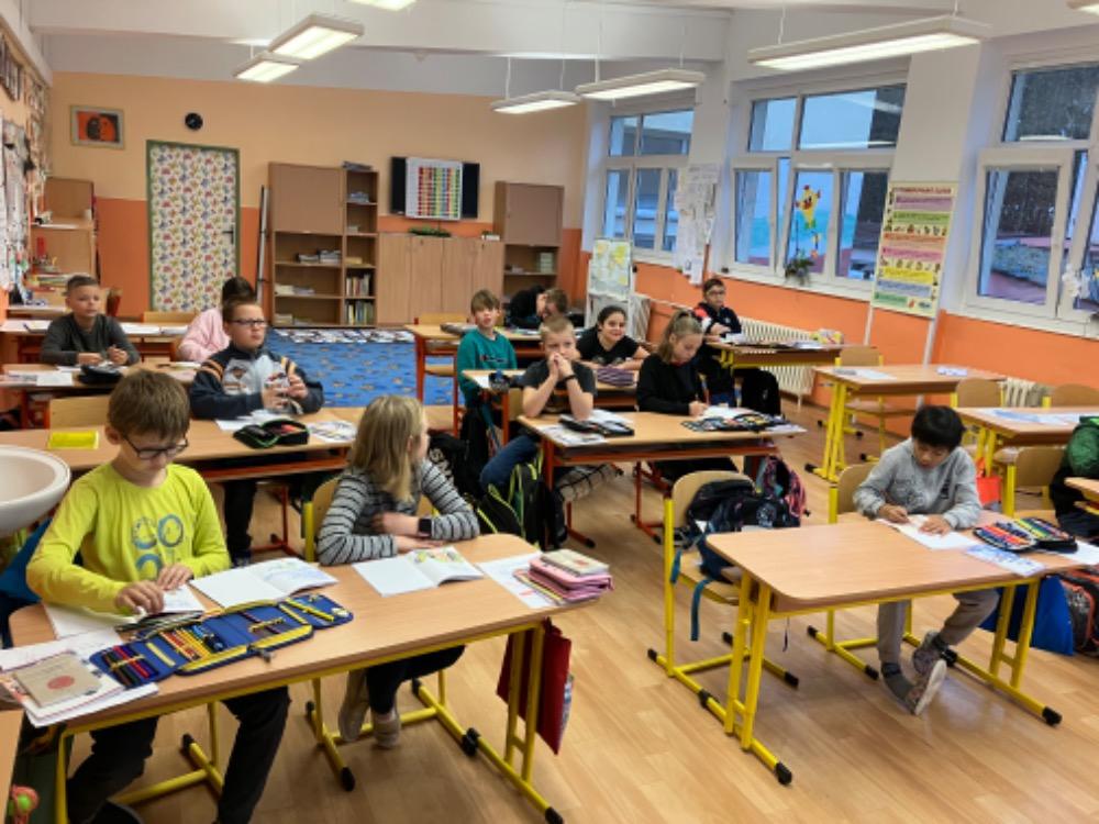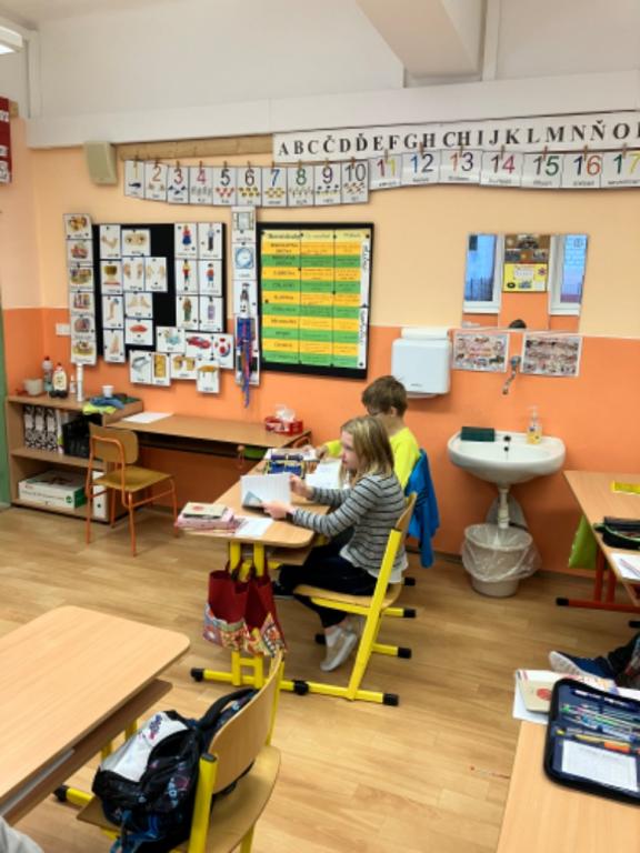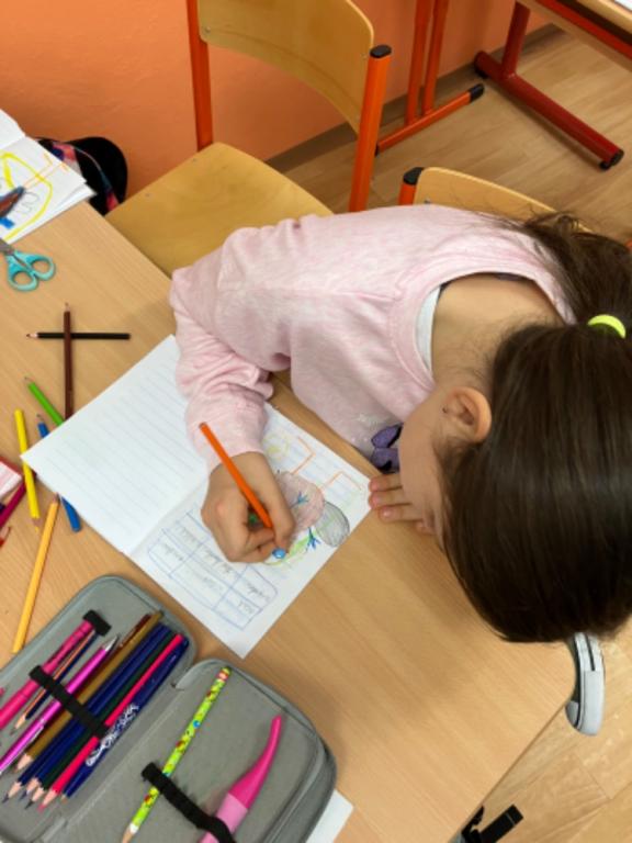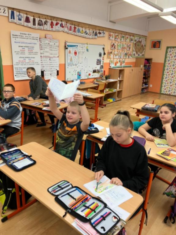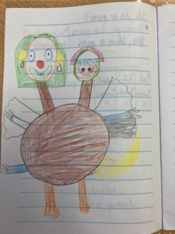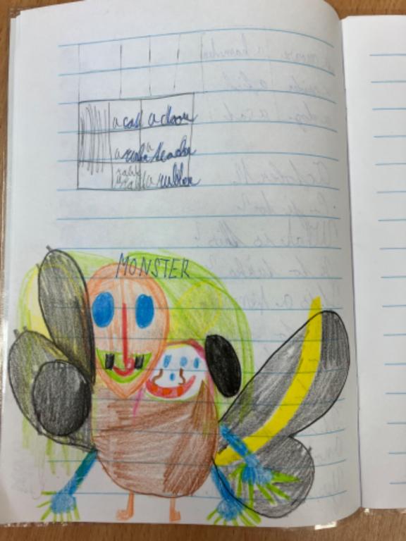 Já chodím po třídě mezi dětmi a v anglickém jazyce jim vždy popisuji „My monster,“ neboli mou příšerku. Děti dle mých slov, ale především dle vlastní fantazie, podle mého popisu kreslí svou příšerku. Při popisu musejí děti velmi pečlivě poslouchat, jelikož kladu důraz na velikost, délku, ale i barvu.