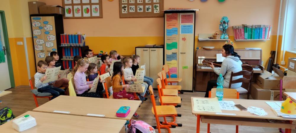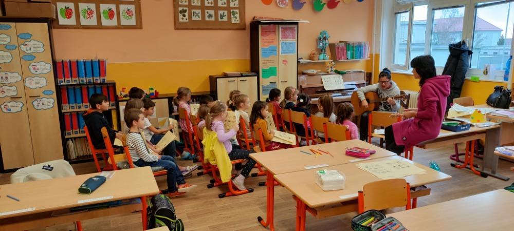Koledy jsou symbolem vánočních svátků, v předvánočním čase je slyšíme na každém kroku. I my ve škole zpíváme vánoční koledy. Aby se je děti lépe na učily, dostaly obrázkový zpěvník, podle kterého si lépe zapamatovaly text. Jelikož koledy zpíváme krásně, chtěli jsme se pochlubit, a tak jsme pozvali na návštěvu děti z přípravné třídy. Společně jsme je naučili koledu Půjdem spolu do Betléma, také jsme ji doprovodili na hudební nástroje. Na konec jsem si naše obrázkové zpěvníky krásně vybarvili. Byla to velmi povedená hudební výchova a všem se nám líbila. Už se těšíme, až si koledy zazpíváme také s rodiči u vánočního stromečku.